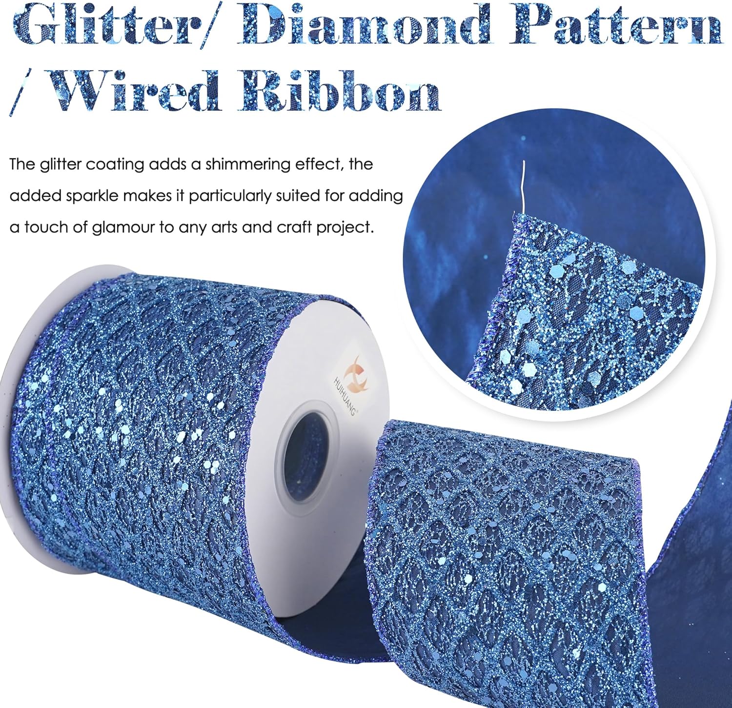 - Color: Navy blue glitter wired ribbon brings a bright and beautiful sparkly touchness to your decoration craft ideas and holiday gift wrapping, especially for Christmas tree decorations and more