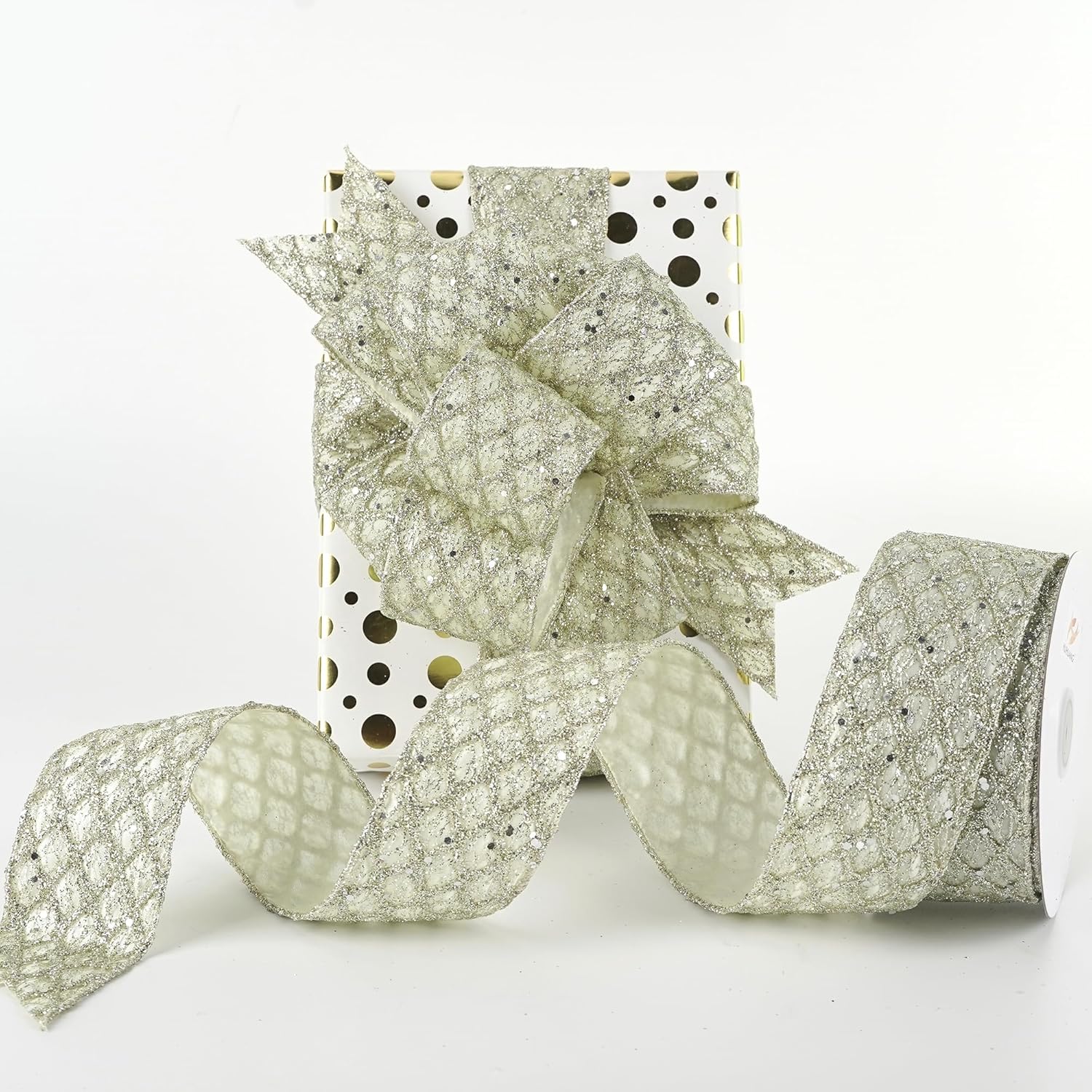 - Size and Package: This wired ribbon measures 2-1/2" wide and 10 yards(30 feet ) continuous long each roll, and the glitter diamond-shaped pattern on the wired ribbon adds a shiny and geometric element to Christmas decorations