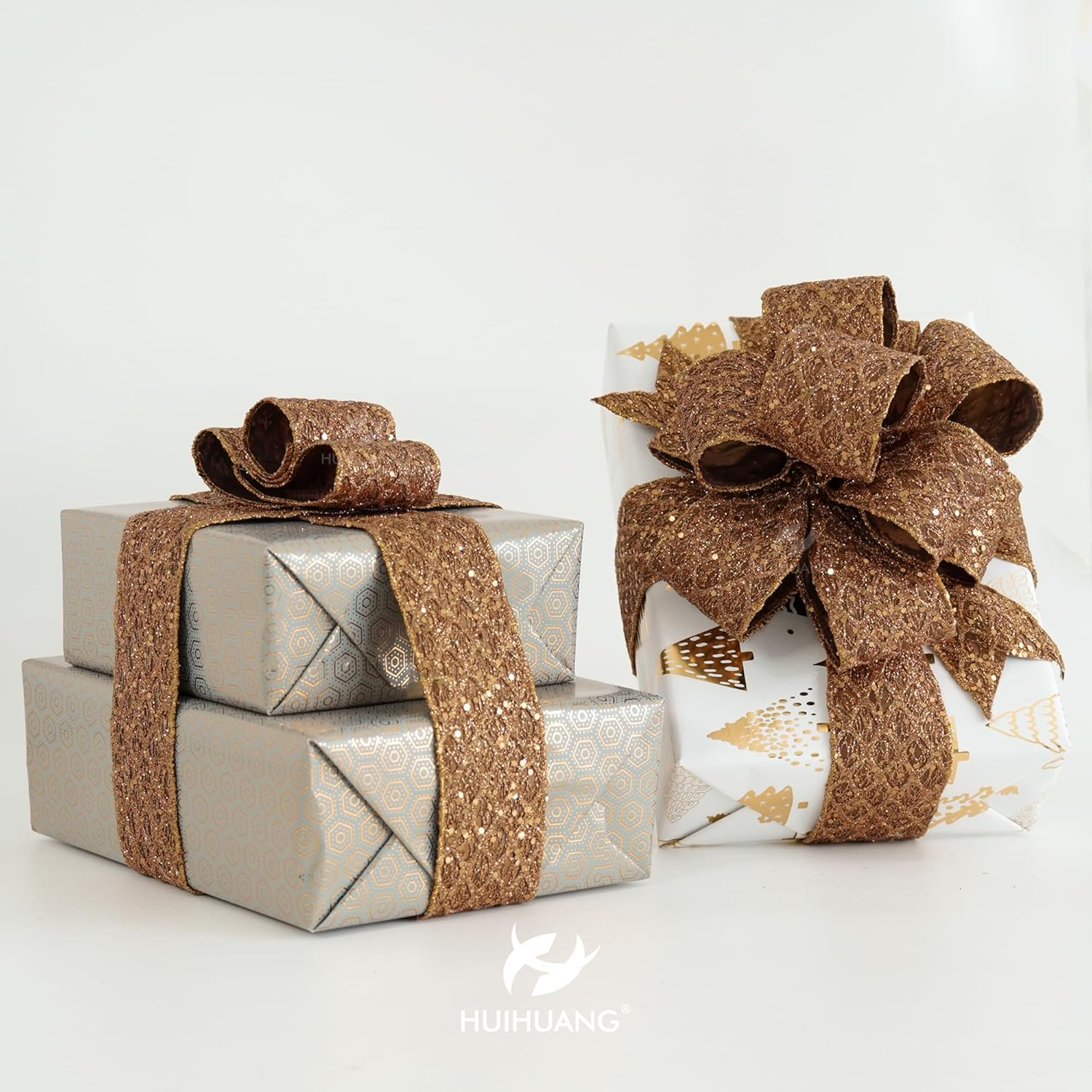 - Color: Copper glitter wired ribbon brings a bright and beautiful sparkly touchness to your decoration craft ideas and holiday gift wrapping, especially for Christmas tree decorations and fall decor