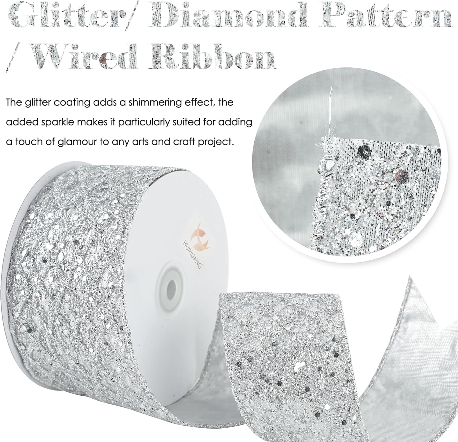 - Color: Silver glitter wired ribbon brings a bright and beautiful sparkly touchness to your decoration craft ideas and holiday gift wrapping, especially for Christmas tree decorations