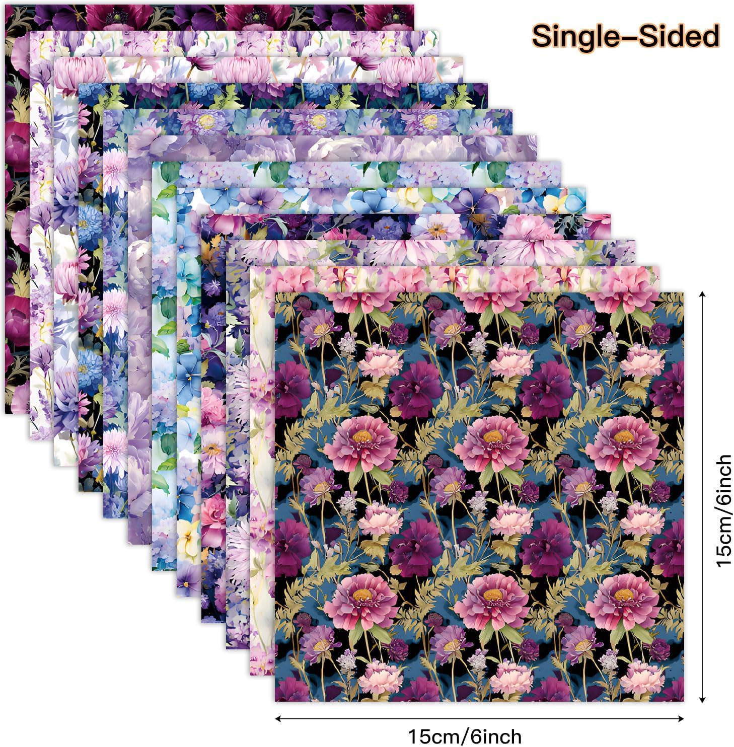 - COLOR &SIZE:This Vintage Purple Floral Scrapbook Paper Pack includs 12 different designs,2 sheets for each pattern,total of 24 sheets.Mixcolor.6"*6"/15.2cm*15.2cm Per Sheets.160gsm Wooden free Paper.
