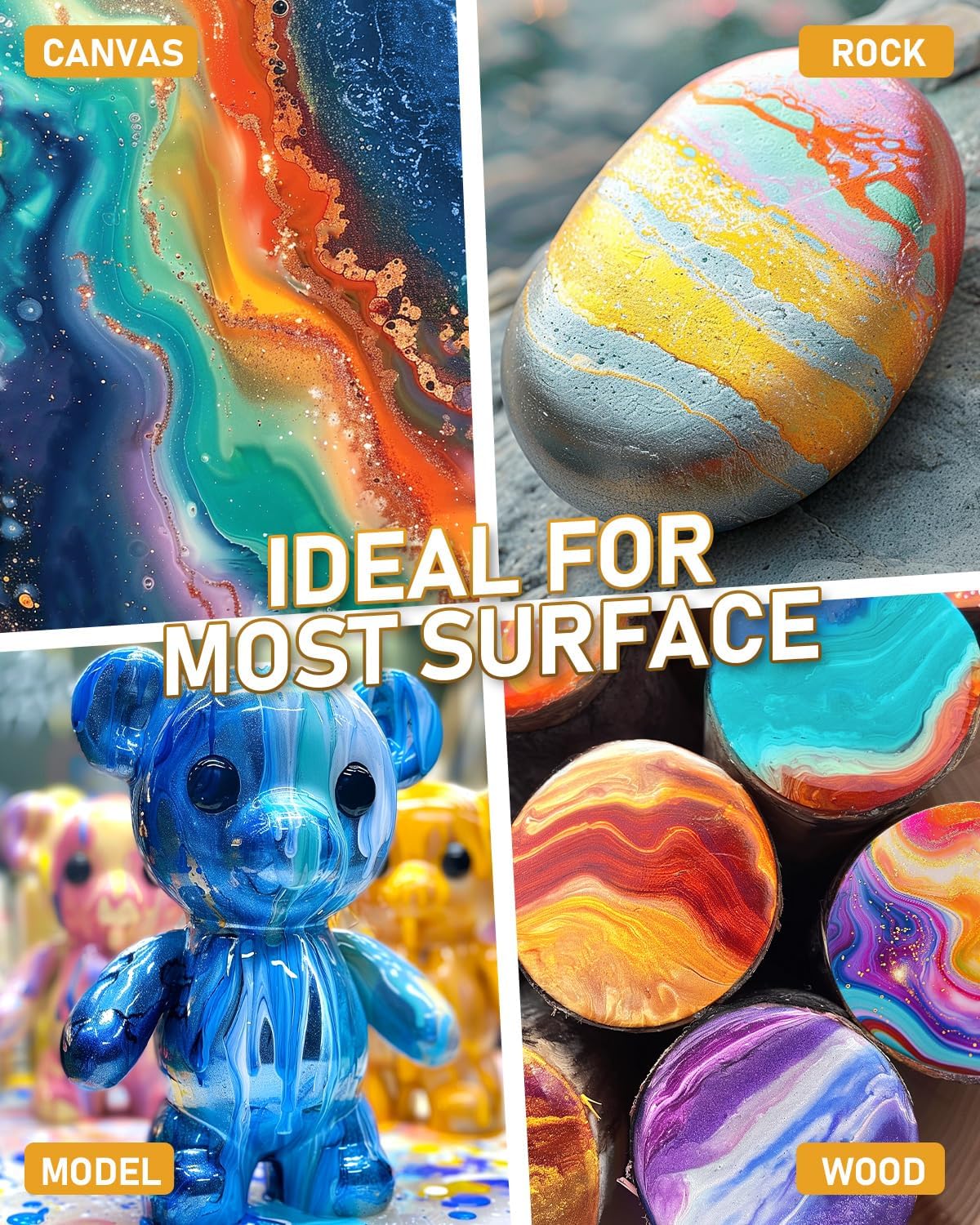 - Versatile Purposes: Nicpro pouring acrylic paint can be used on most surfaces, such as wood, stone, canvas, glass, ceramic. Perfect for making abstract paintings and DIY art works