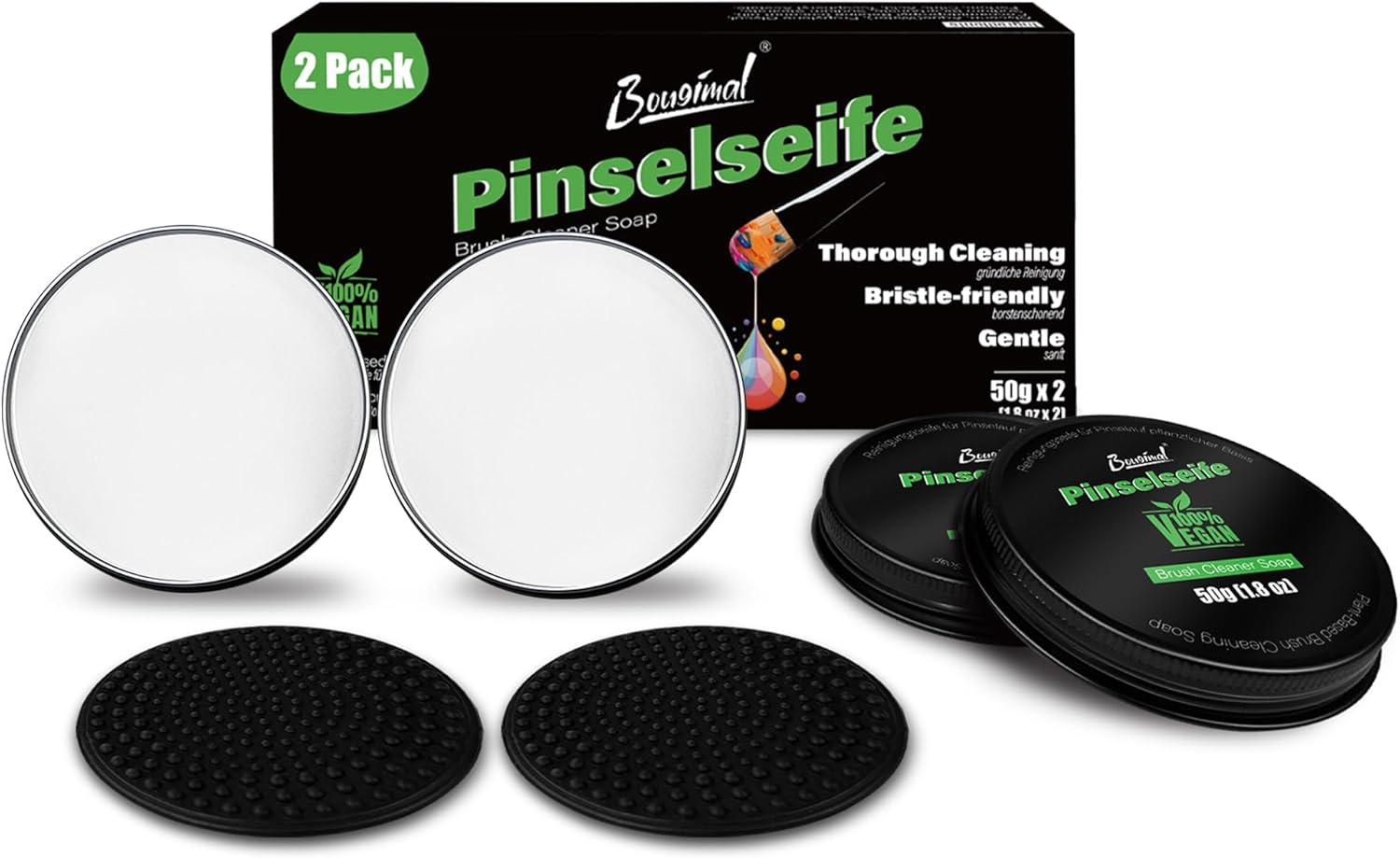 Bougimal Paint Brush Cleaner Soap, Artist Series, Solvent Free Natural Vegetable Glycerin Paint Brush Cleaner for Cleaning Oil Paint Brushes, Acrylic Paint Brushes, Watercolor Brushes, 2 Pack(3.6Oz)