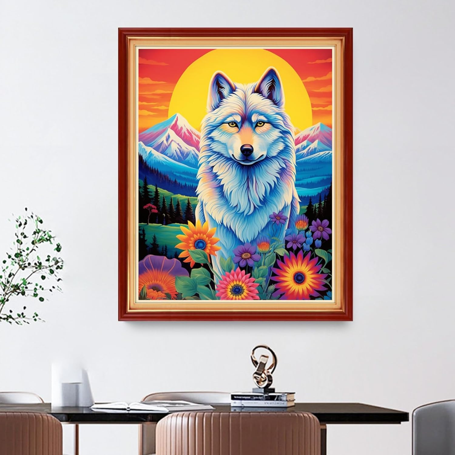 Foxdiviy Stamped Cross Stitch Kits Full Range of Embroidery Needlework Starter Kits for Beginners Adults 11CT Embroidery Patterns Art Crafts DIY Needlepoint Kits-Sunrise Wolf 16x20 inch