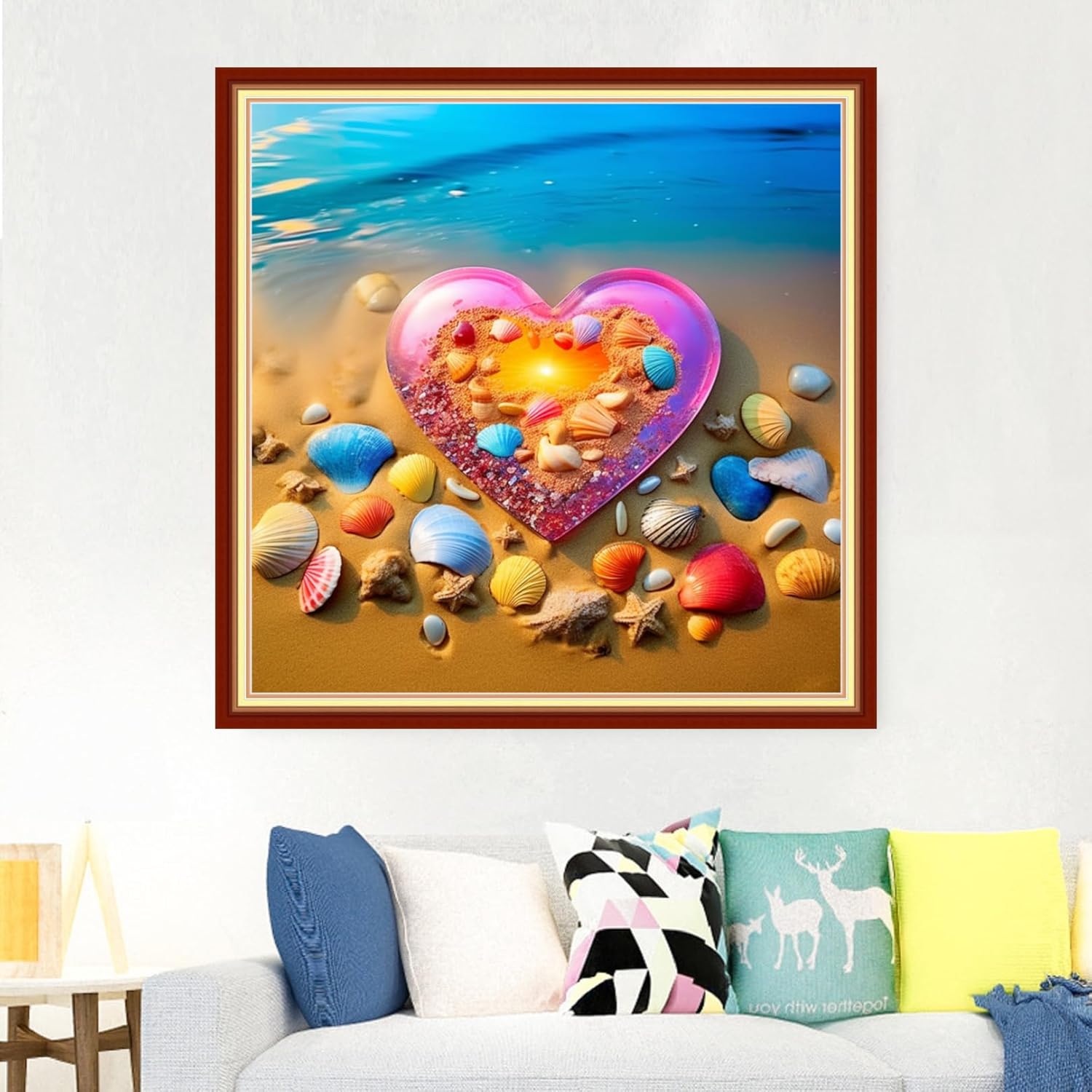 Foxdiviy Stamped Cross Stitch Kits Full Range of Embroidery Needlework Starter Kits for Beginners Adults 11CT Embroidery Patterns Art Crafts DIY Needlepoint Kits-Beach Love 18x18 inch
