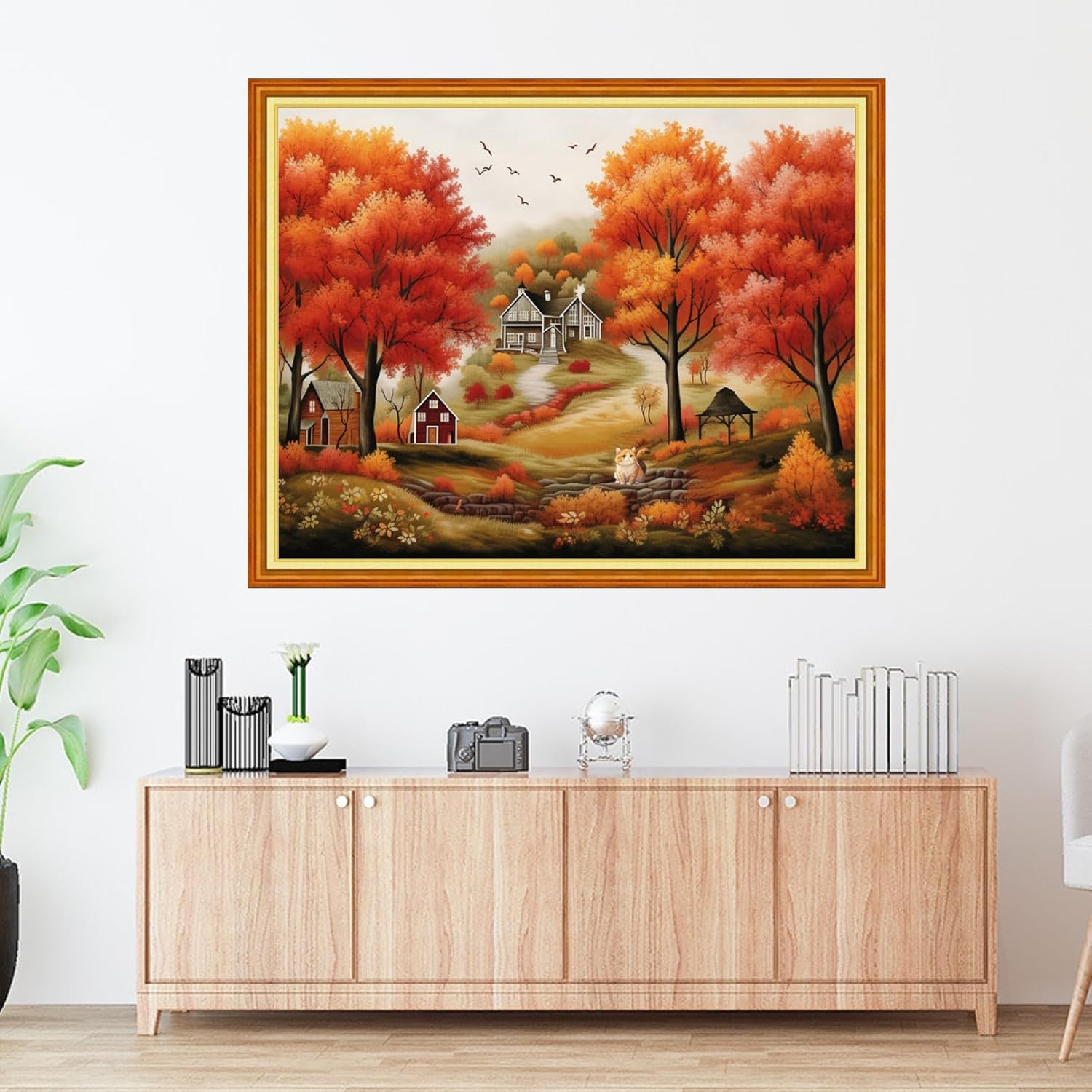 Foxdiviy Stamped Cross Stitch Kits Full Range of Embroidery Needlework Starter Kits for Beginners Adults 11CT Embroidery Patterns Art Crafts DIY Needlepoint Kits-Beautiful Home 16x20 inch