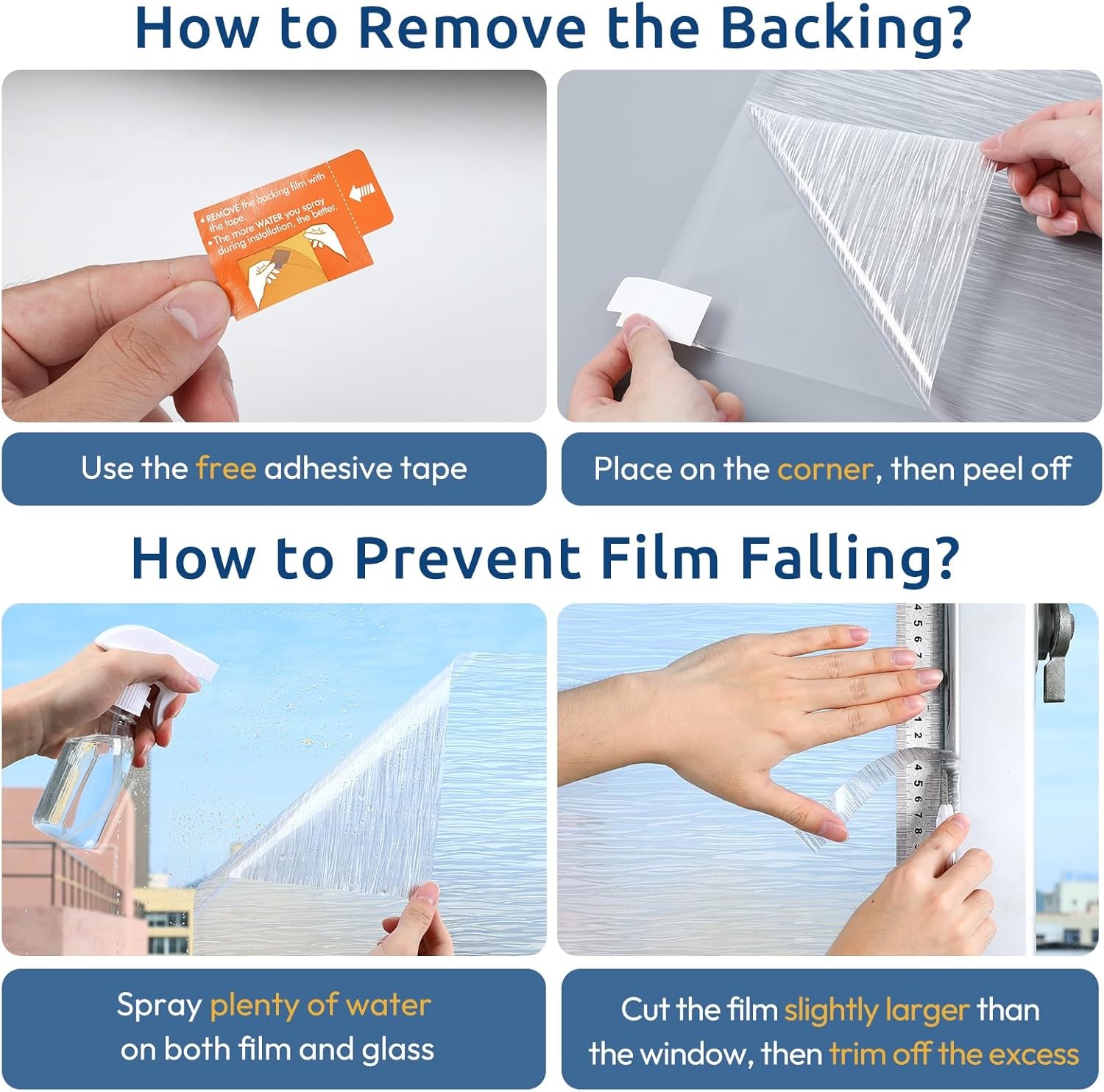- No Glue Design: Say goodbye to sticky, harmful glue - This window decals for glass windows are super static cling and works great on flat, clean, and smooth glass surfaces, can be easily removed and reused for multiple times according to your need, an optimal and economical option for home application instead of expensive textured glass