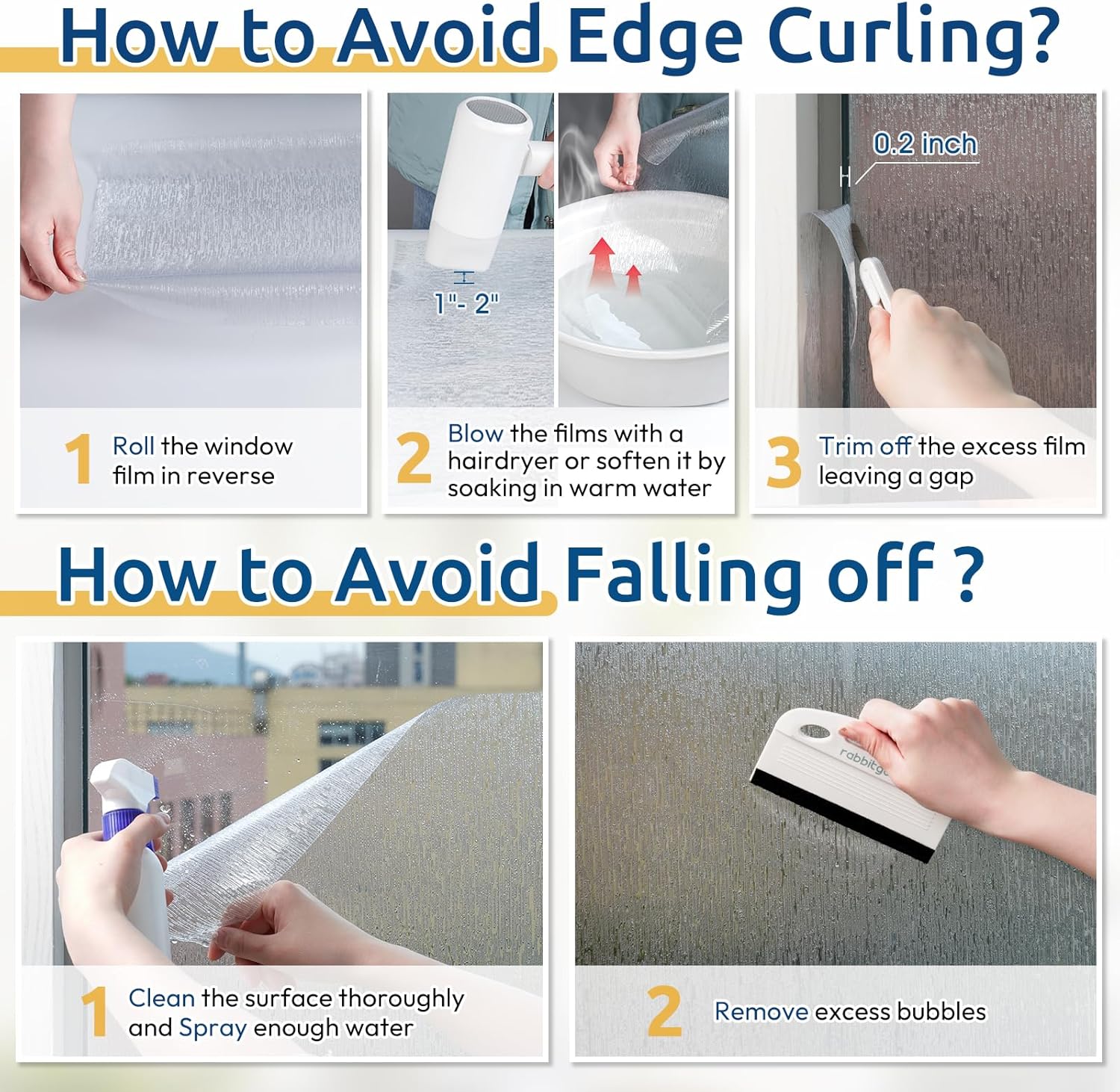 - Easy Installation & Secure Fit: Clean glass thoroughly with spray soapy water liberally, then smoothly apply the film. Use a squeegee to push bubbles outward from the center. Press edges firmly with a cloth and allow 24-48 hours to cure