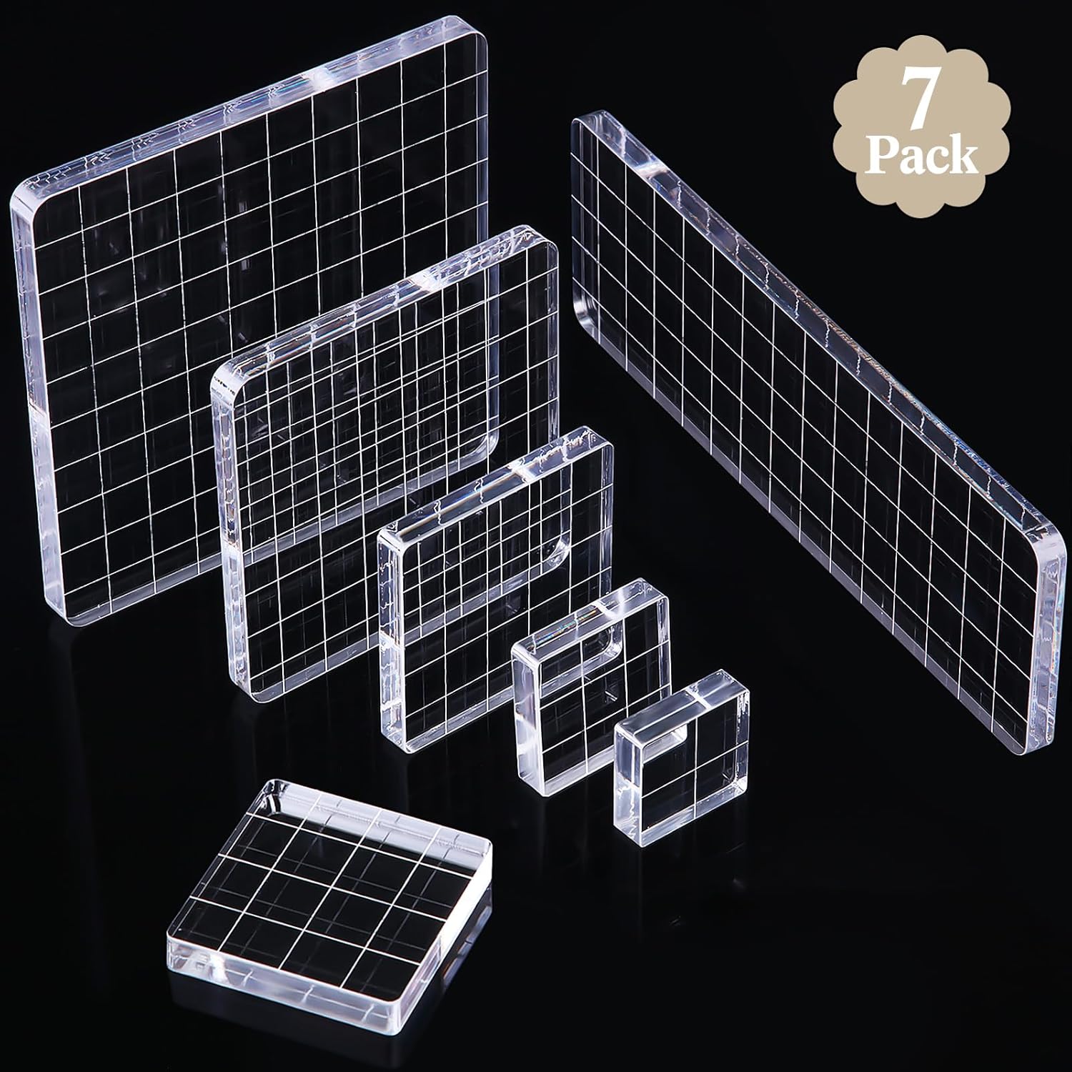 Mudder 7 Pieces Acrylic Stamp Blocks Set Clear Stamping Blocks Tools for Kids with Grid and Grip Scrapbooking Craft Making, Decorative DIY Essential Stamping Tool(Straight Edge)