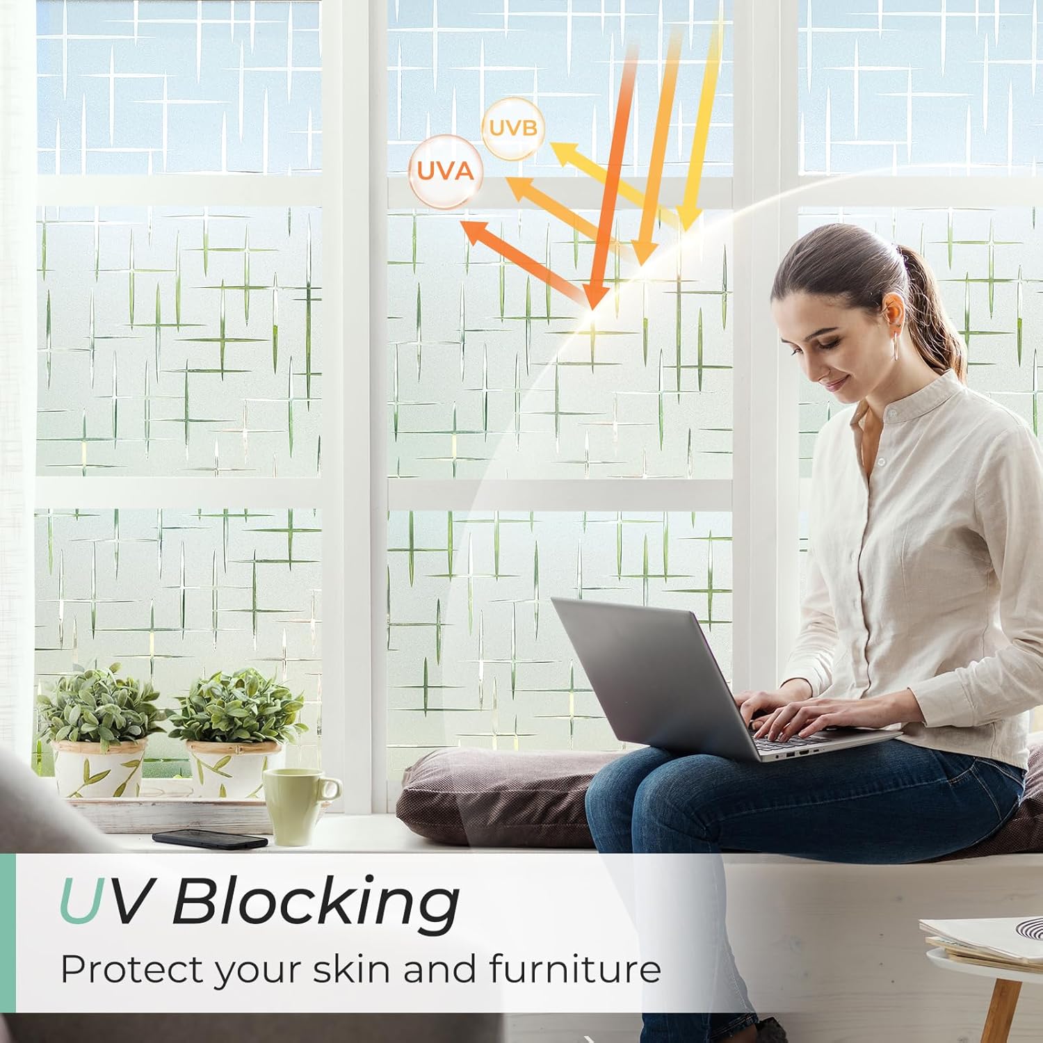 - Stylish looking: The unique horizontal and vertical intersecting lines create a sophisticated look that complements any decor style. The interplay of these lines offers a harmonious balance between simplicity and complexity. Decorative window film can transform ordinary glass into a stunning focal point