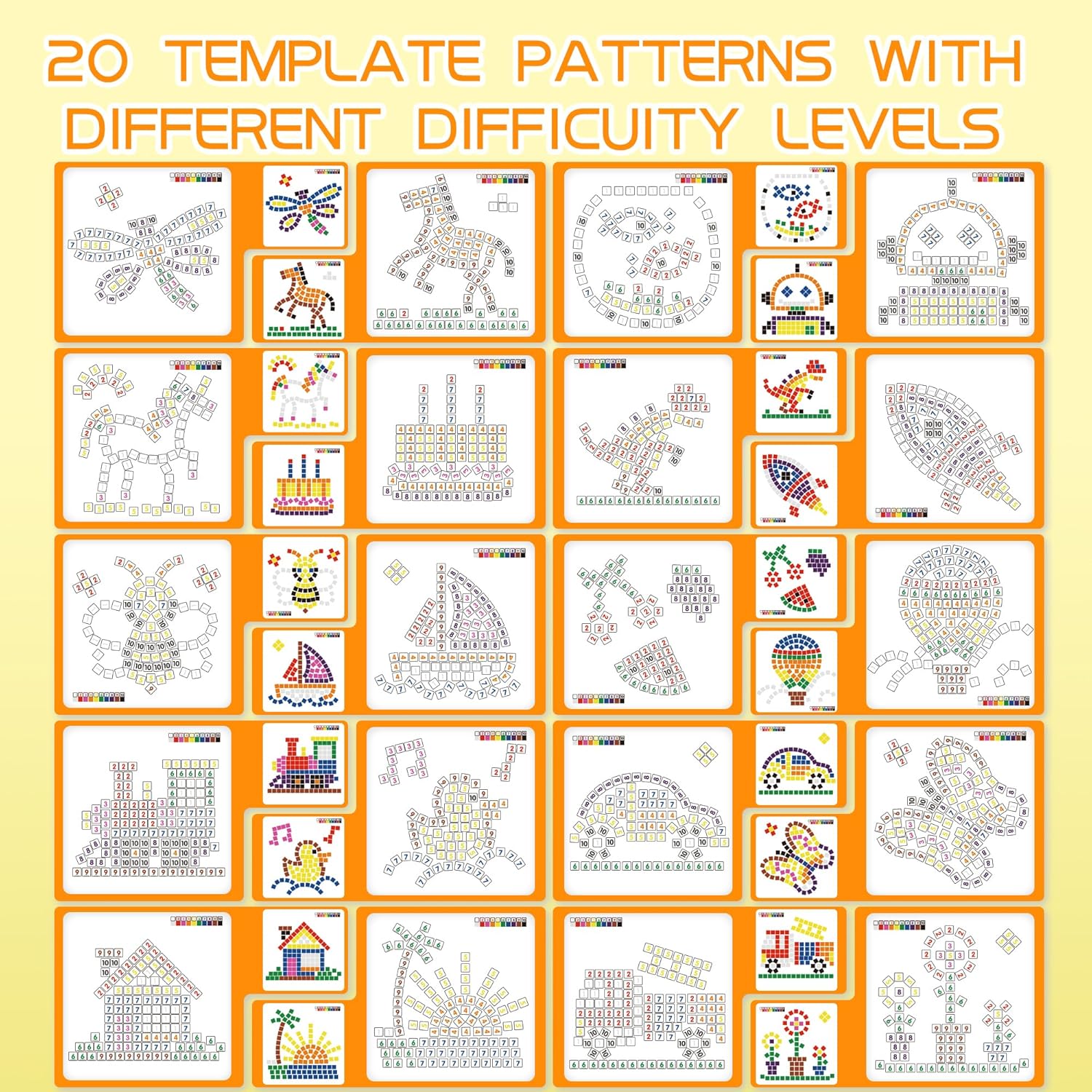 - Mosaic Creations Magnetic Designer: Using our templates, match colors and numbers to create 20 different art patterns, including dinosaurs, robots, animals, and more. Various difficulty levels provide different challenges, enhancing children's hand-eye coordination, pattern recognition, and fine motor skills