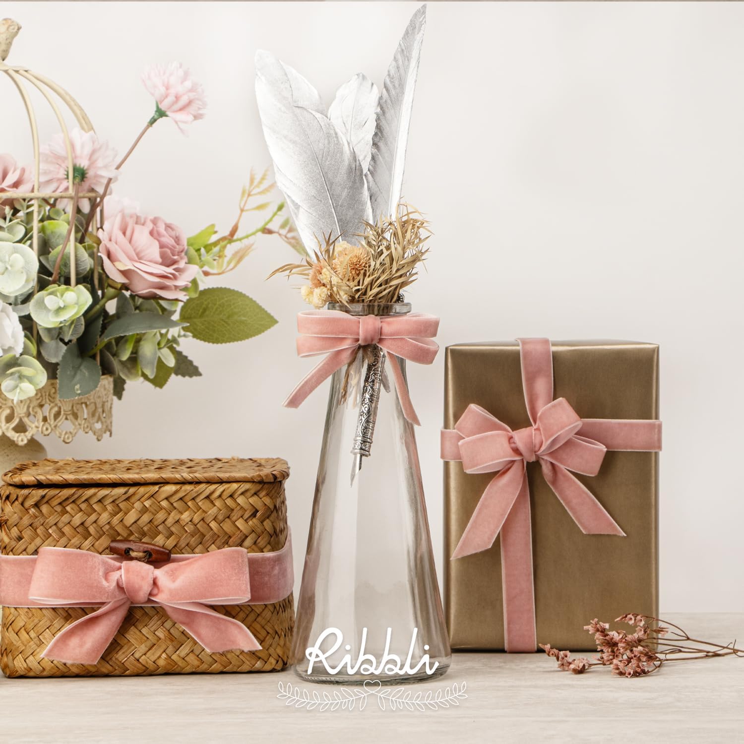 Ribbli Rose Gold Velvet Ribbon 1 Inches Continuous10 Yard Spool Dusty Pink Christmas Ribbon for Gift Wrapping Crafts Home Decor