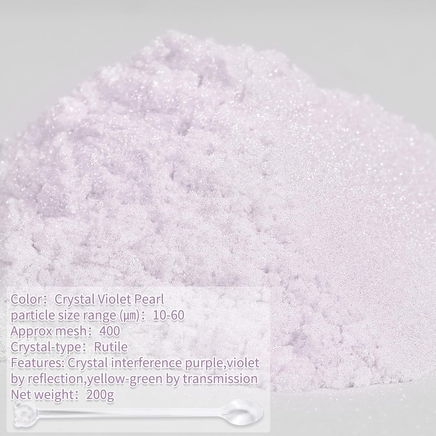 - 【Super Surprise Color Combination】:Our Crystal Violet Pearl mica powder net weight is 200g/7.05oz large bottle. Just a little mica powder can bring a very gorgeous effect.With its shiny surface,this mica powder pigment provides a gorgeous and lasting effect for your artistic creation.
