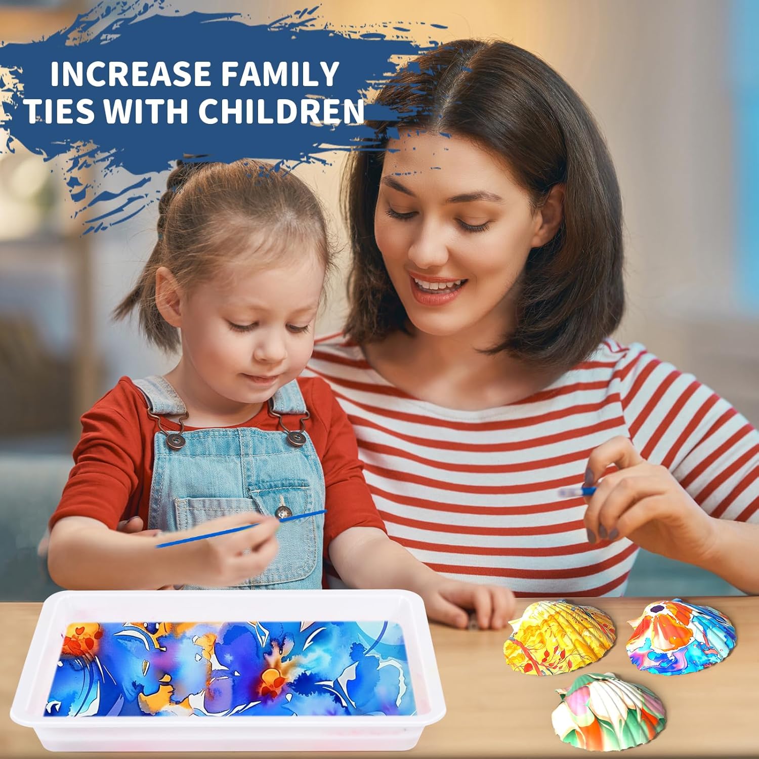 Water Marbling Paint Kit for Kids, Arts & Crafts, Non-Toxic, Age 3-12, Includes 6 Colors, 10 Sheets, Tools, 12 Shells, 2 Display Boxes