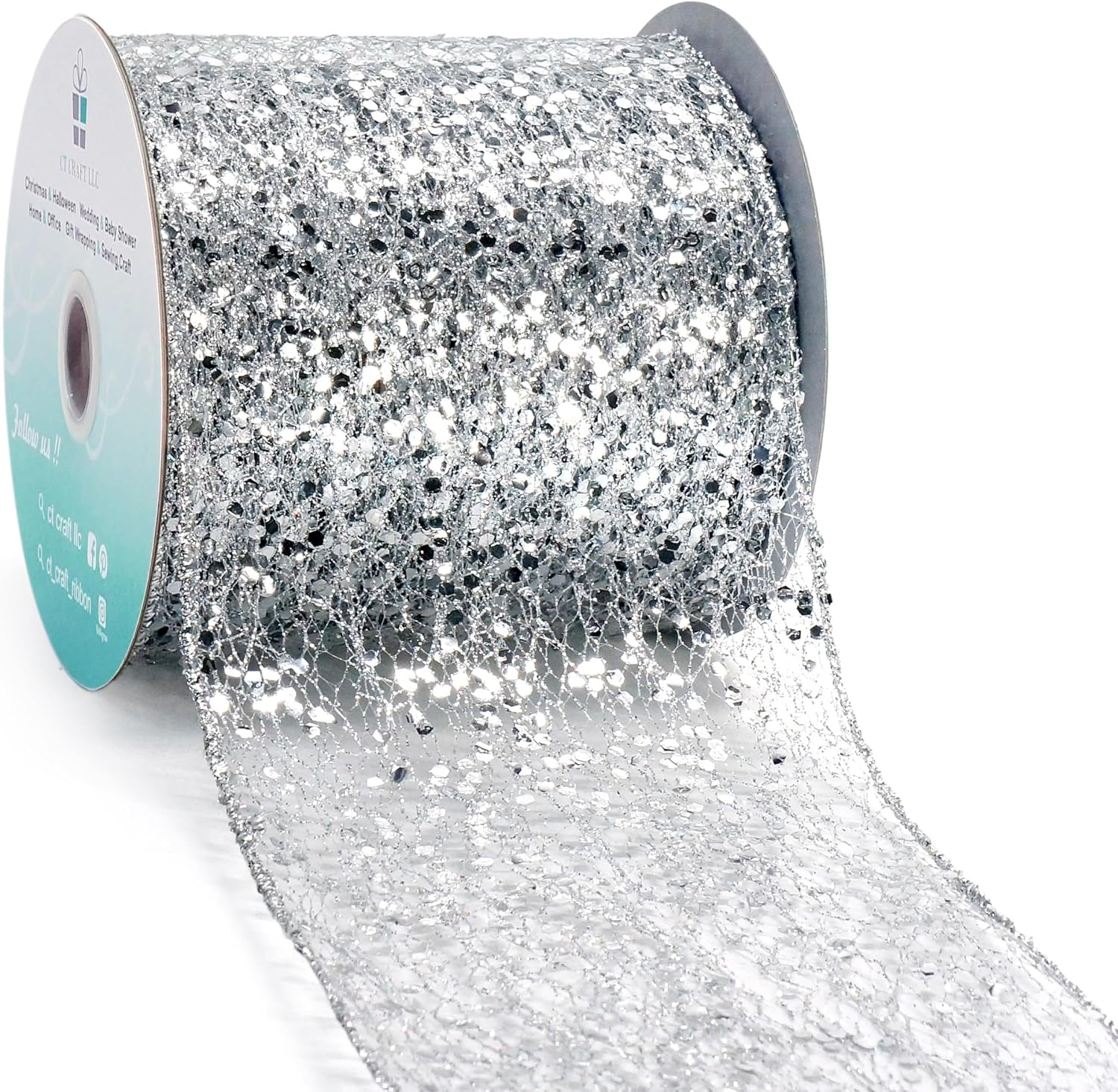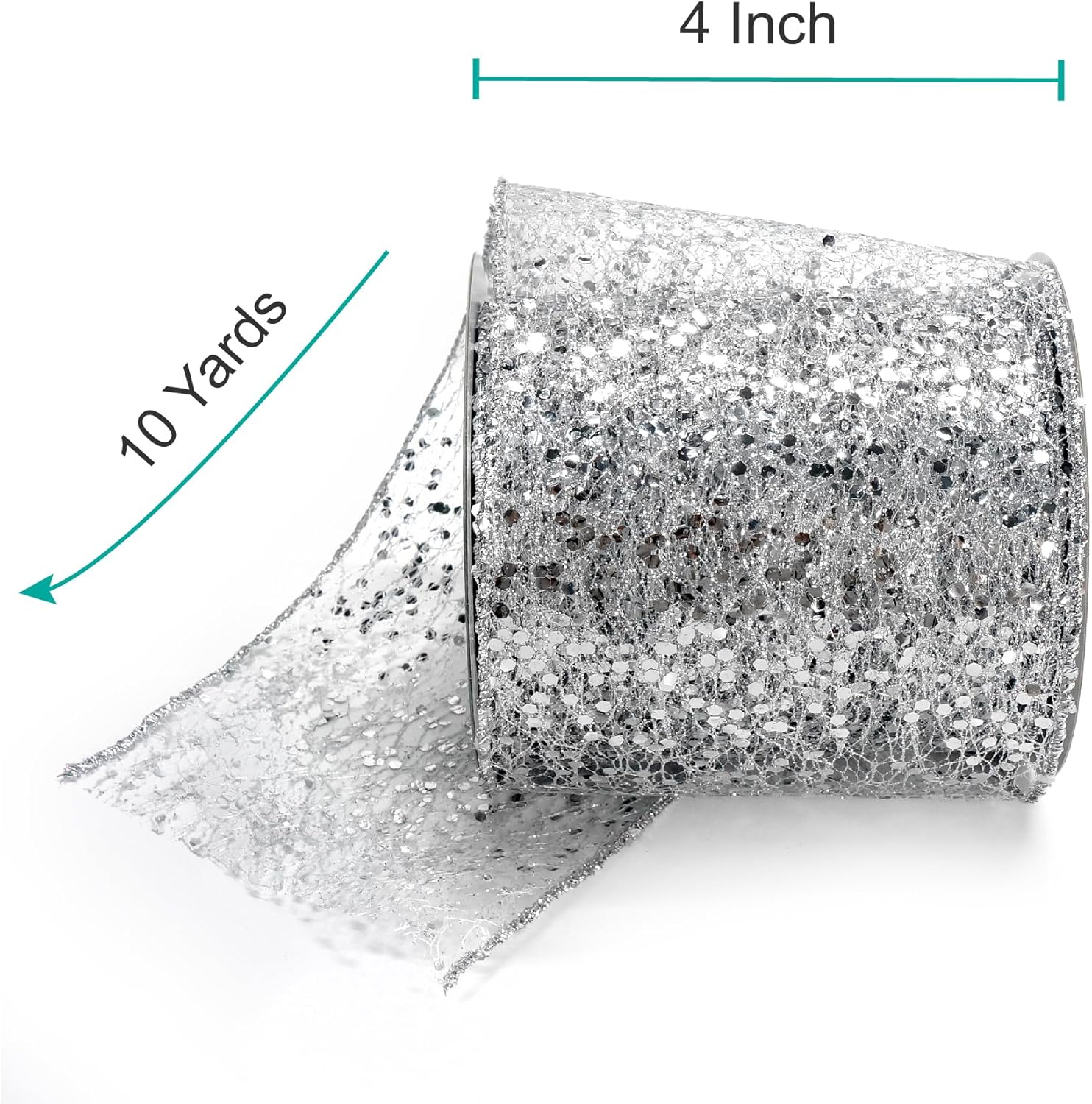 - A MUST-HAVE FOR DECORATION - Don't miss it if you're choosing a Sparkling Glitter Mesh Wired Ribbon 4" Silver for your decoration! Our ribbon works perfectly for decorating and adding finishing touch to your craft projects. Simple and elegant.
