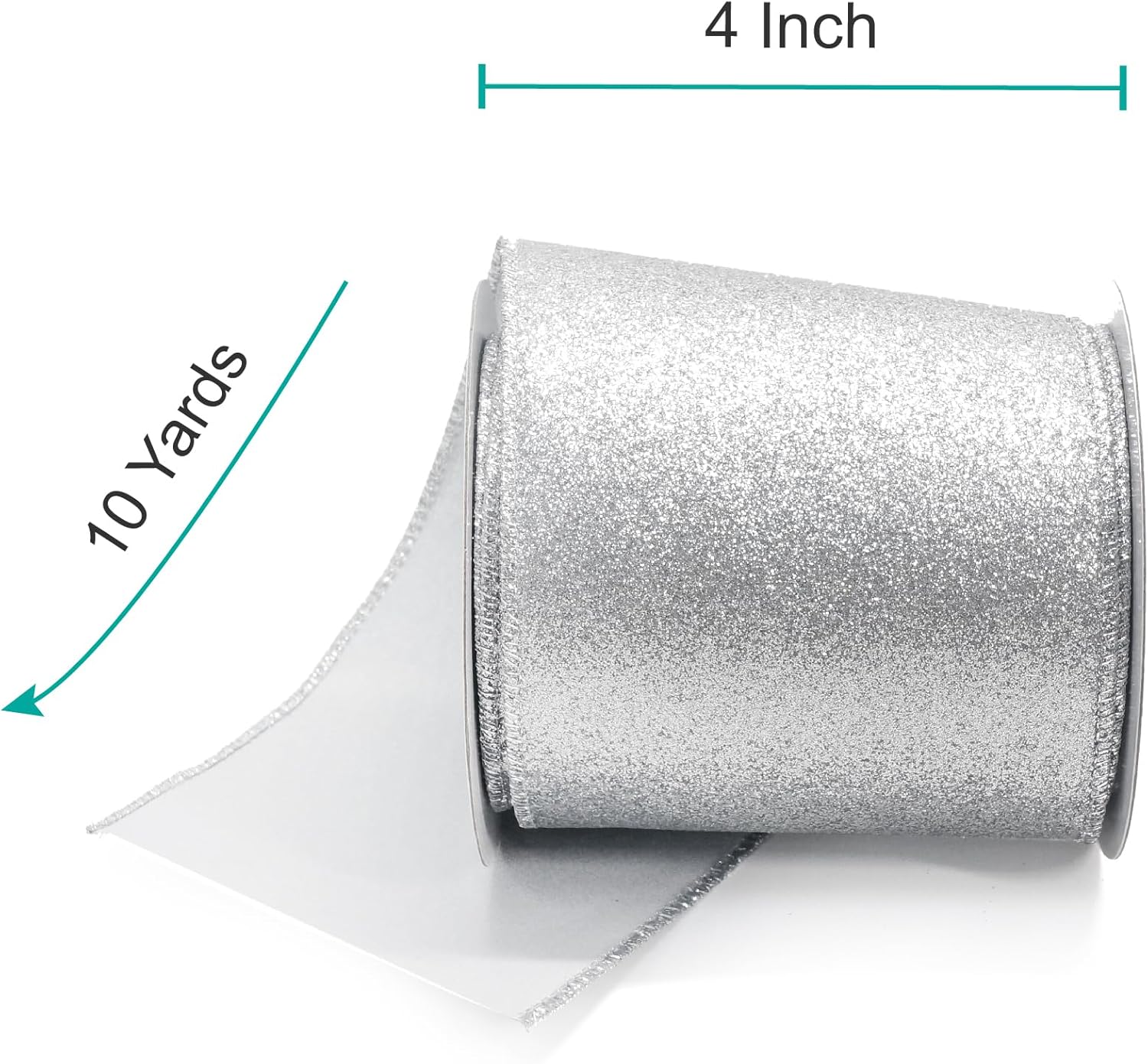 - A MUST-HAVE FOR DECORATION - Don't miss it if you're choosing a Glitter Wired Ribbon 4" Silver for your decoration! Our ribbon works perfectly for decorating and adding finishing touch to your craft projects. Simple and elegant.