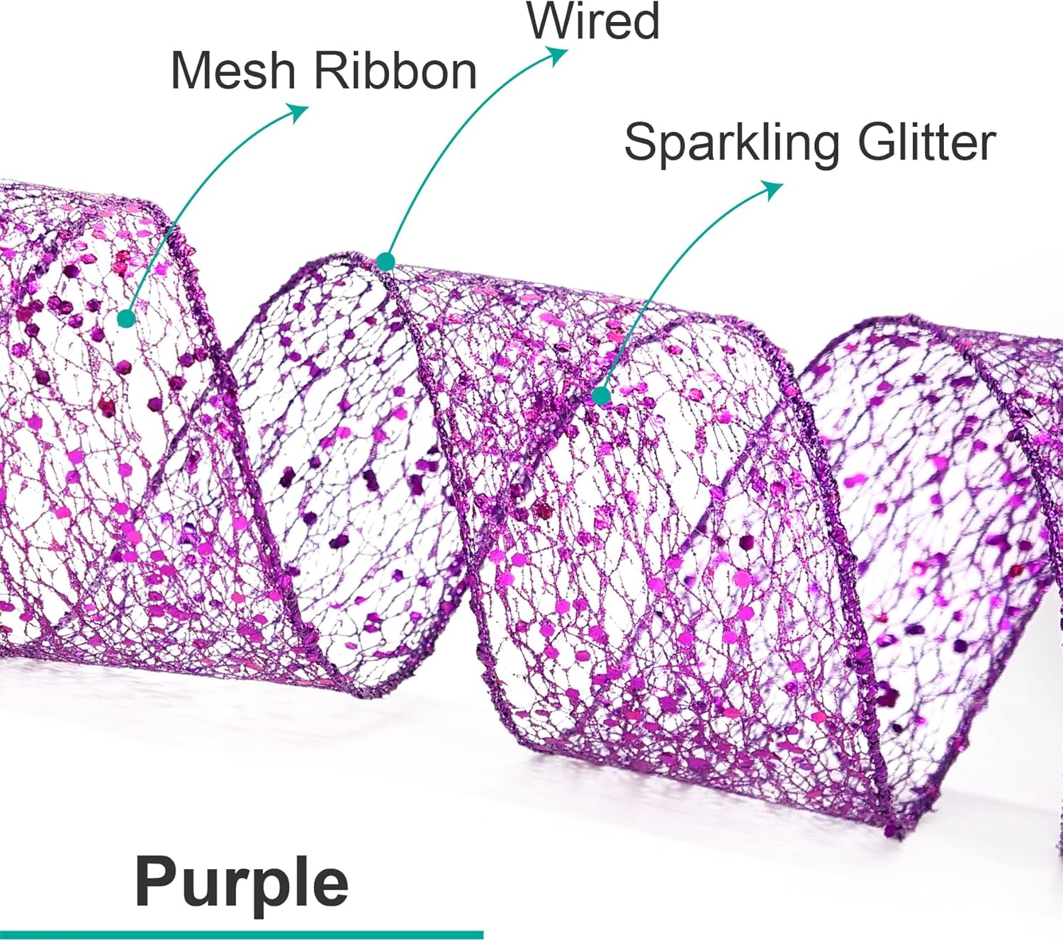 - GREAT WORKMANSHIP - Our Sparkling Glitter Mesh Wired Ribbon 4" has a density weave so you won’t find any loose edges. You won’t find any fraying ends or loose strings anywhere, making our Sparkling Glitter Mesh Wired Ribbon 4" Purple color perfect for high-end and professional DIY works and Crafts.