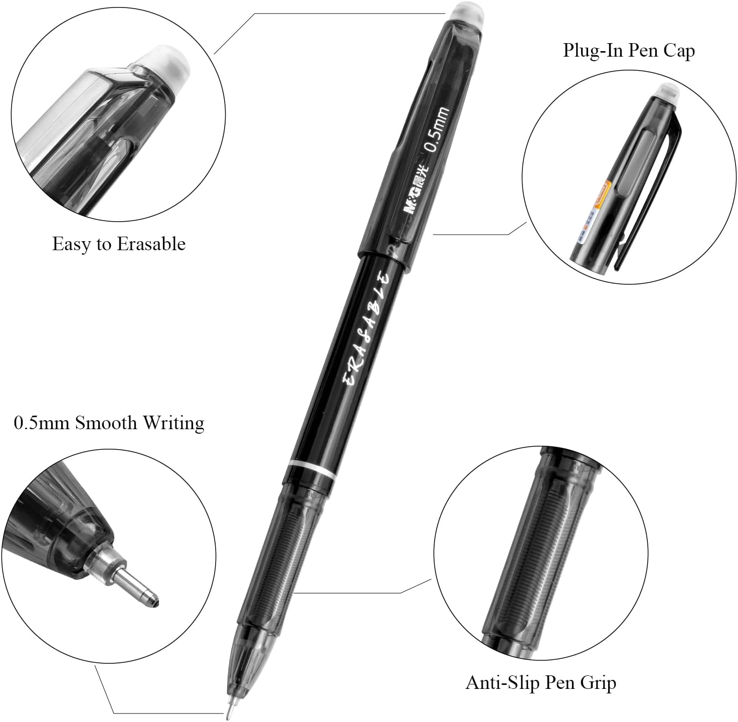 - Erasable Gel Pens: M&G erasable gel pens offer a smooth writing experience while providing room for error. With new ink, simply use the rubber eraser on the pen to effortlessly erase your mistakes, leaving no residue and without tearing the paper. Enjoy the freedom to write, remove, and rewrite without damaging your documents.