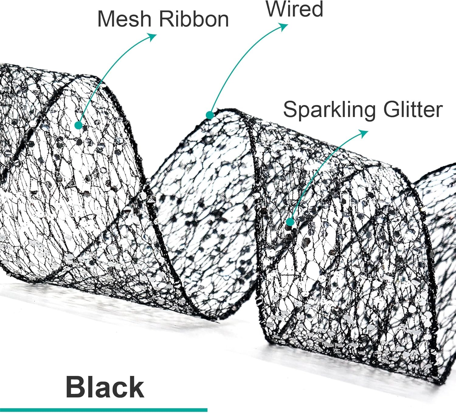 - GREAT WORKMANSHIP - Our Sparkling Glitter Mesh Wired Ribbon 4" has a density weave so you won’t find any loose edges. You won’t find any fraying ends or loose strings anywhere, making our Sparkling Glitter Mesh Wired Ribbon 4" Black color perfect for high-end and professional DIY works and Crafts.
