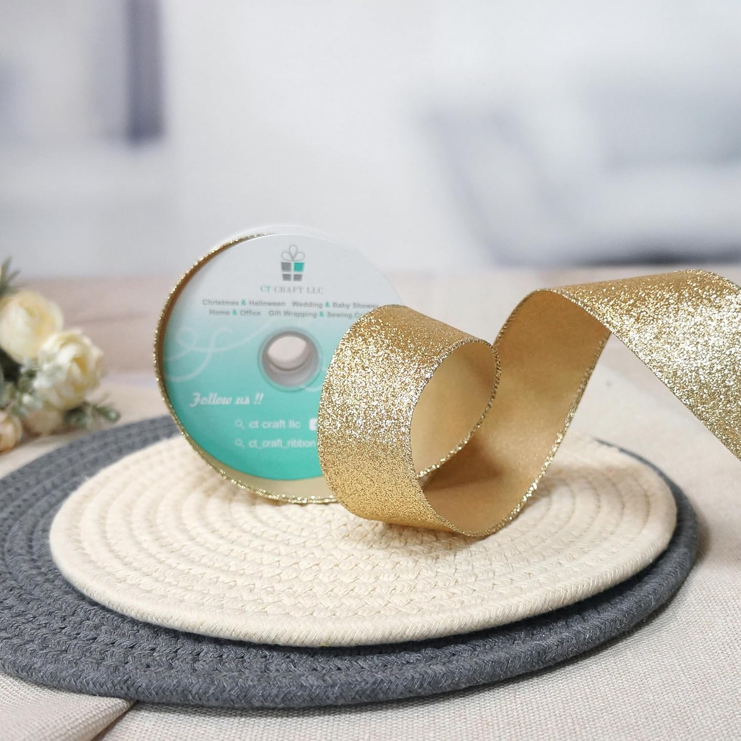 - A MUST-HAVE FOR DECORATION - Don't miss it if you're choosing a Glitter Wired Ribbon 1.5" light gold for your decoration! Our ribbon works perfectly for decorating and adding finishing touch to your craft projects. Simple and elegant.