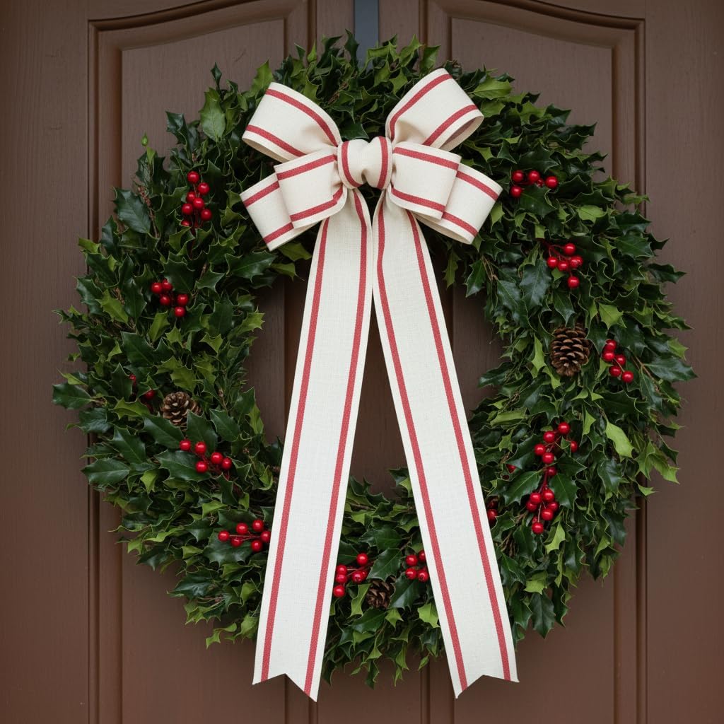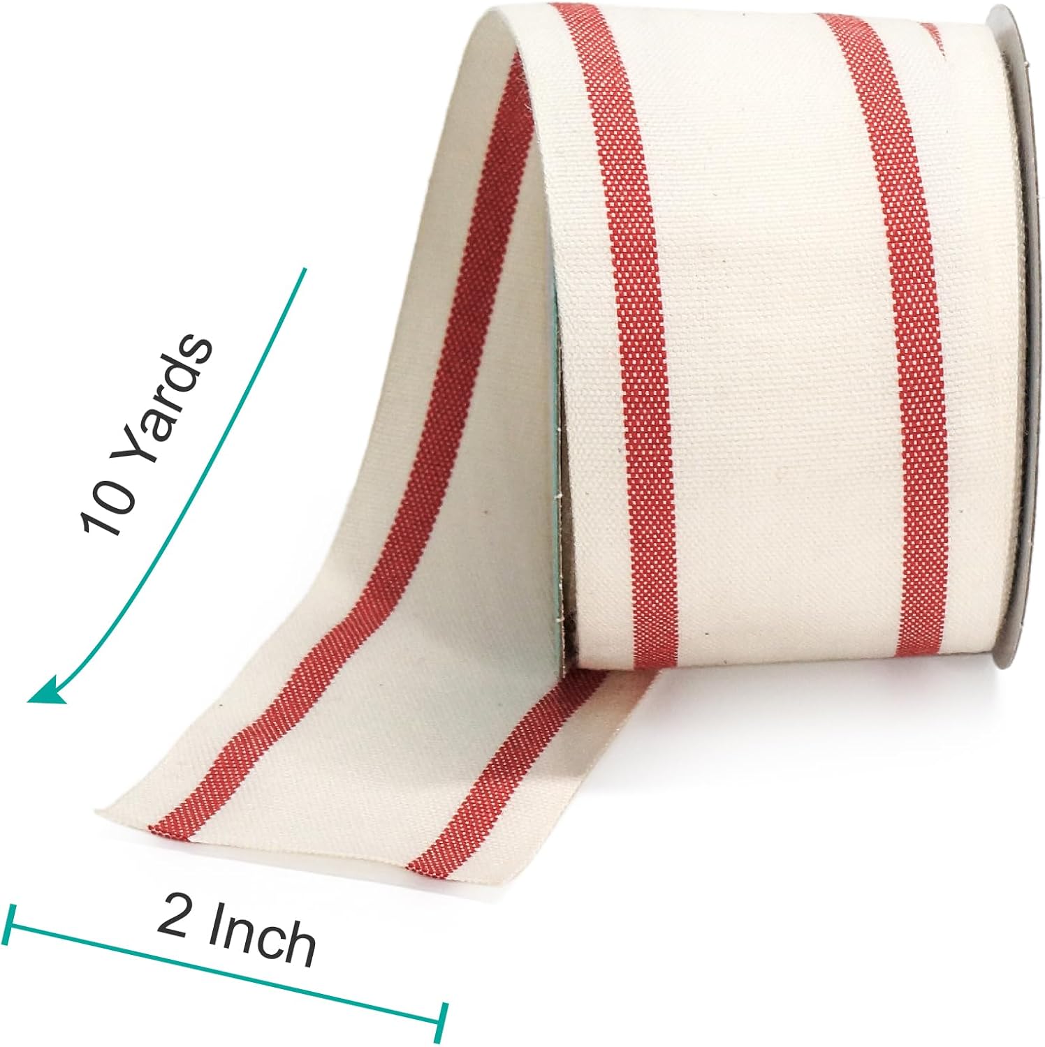 - EASY TO USE - The 10-yard long Ivory Cotton Red Stripes Ribbon 2" is enough for all the decorating and accenting your DIY Crafts. The Ivory Cotton Red Stripes Ribbon 2" is easy to use and won’t tangle. It can be tied or glued on gift packages and DIY craft projects such as car and chair bow, wreath, flower bouquet.