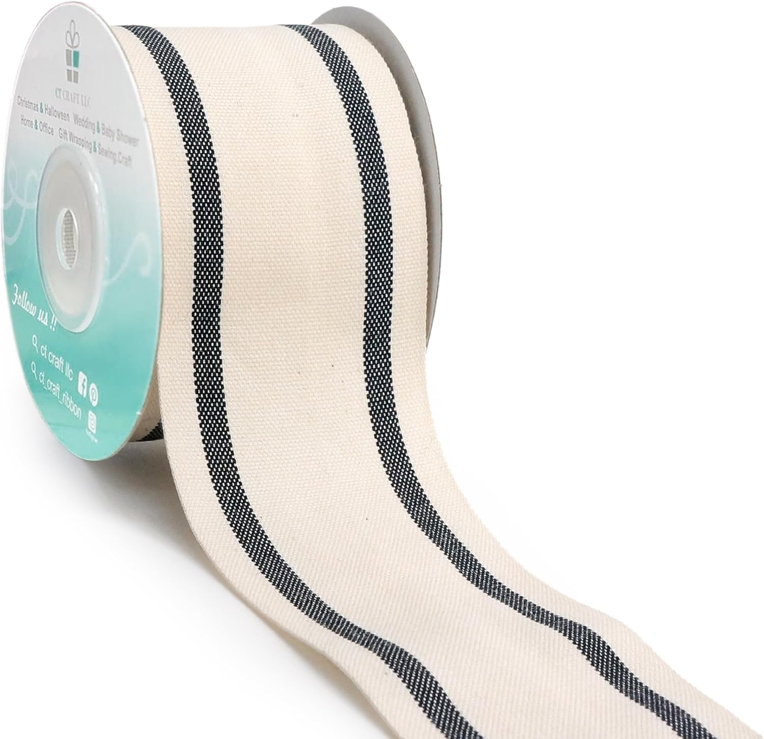 - EASY TO USE - The 10-yard long Ivory Cotton Black Stripes Ribbon 2" is enough for all the decorating and accenting your DIY Crafts. The Ivory Cotton Black Stripes Ribbon 2" is easy to use and won’t tangle. It can be tied or glued on gift packages and DIY craft projects such as car and chair bow, wreath, flower bouquet.