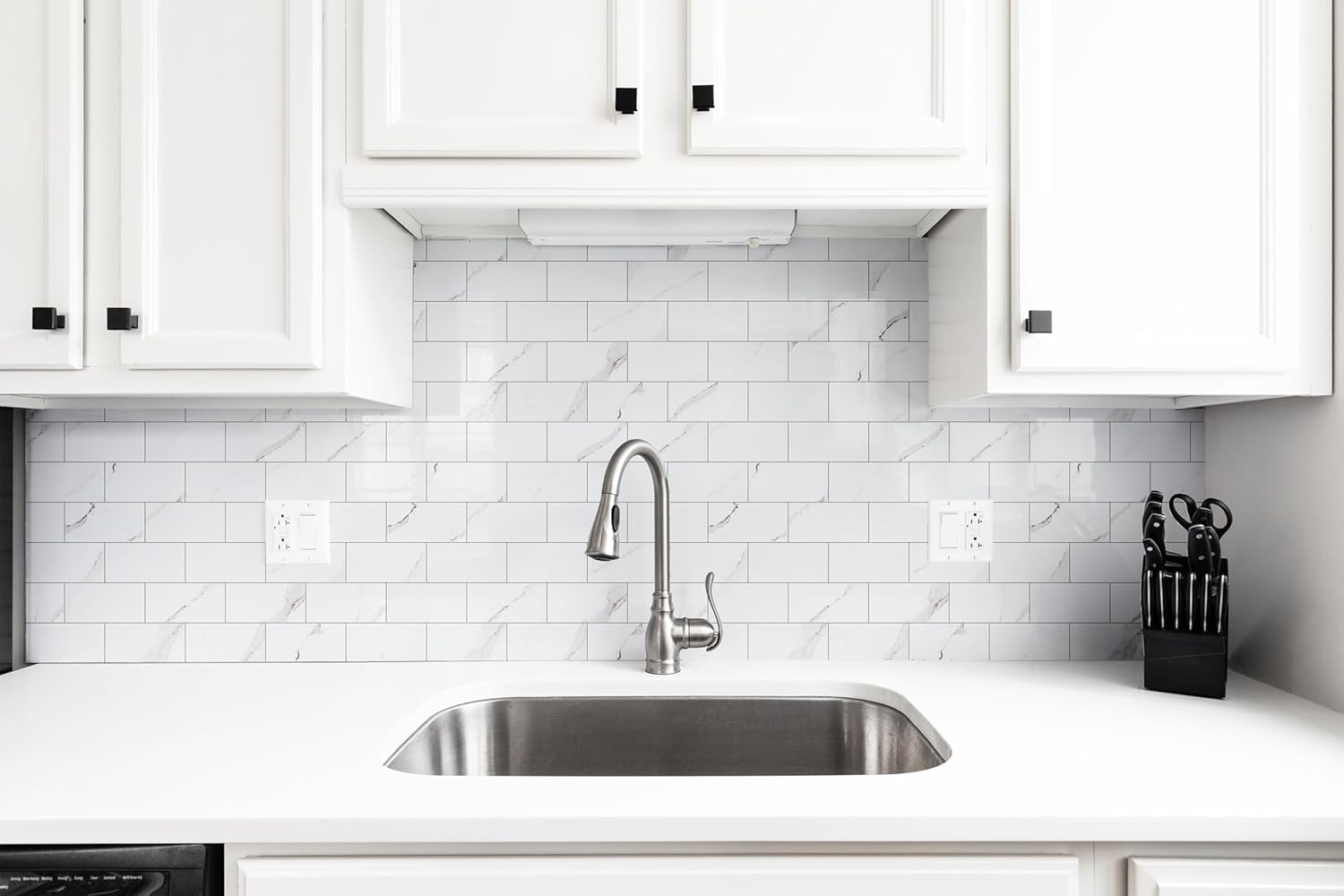 100 Pieces Peel and Stick Backsplash for Kitchen, 3" x 6" PVC Subway Tile 2025 Upgraded Glossy White Marble with White Grout Backsplash Stick on Tile Elevate Kitchen Fireplace RV