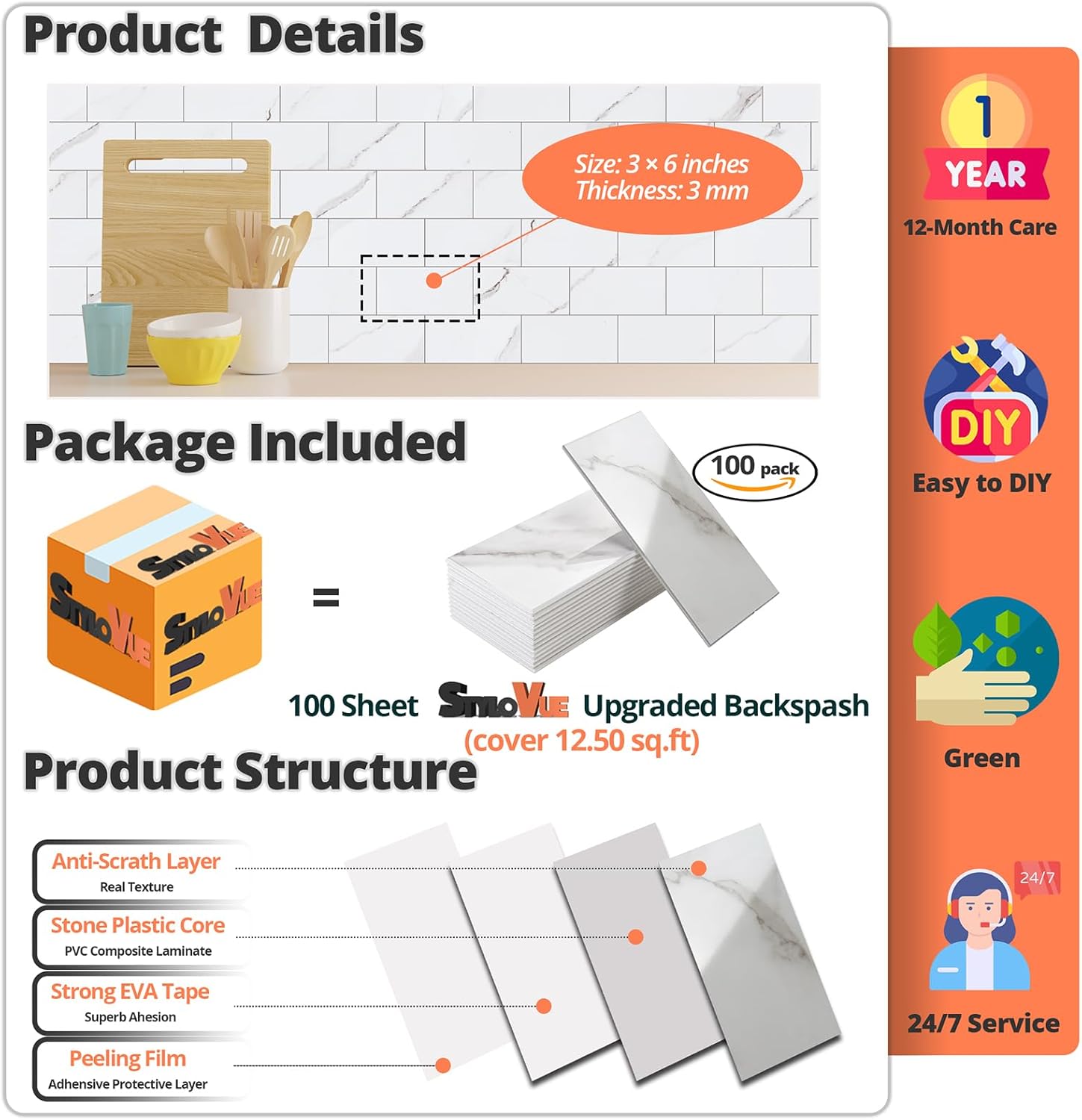 - šš«šš¦š¢š®š¦ ššš«ššØš«š¦šš§šš: Our peel and stick wall tiles are designed with high-performance PVC polymer material, offering waterproof, heat-resistant, stain-resistant, anti-scratch, and fadeless properties. Rest assured, the super-strong adhesive ensures the tiles stay securely in place!