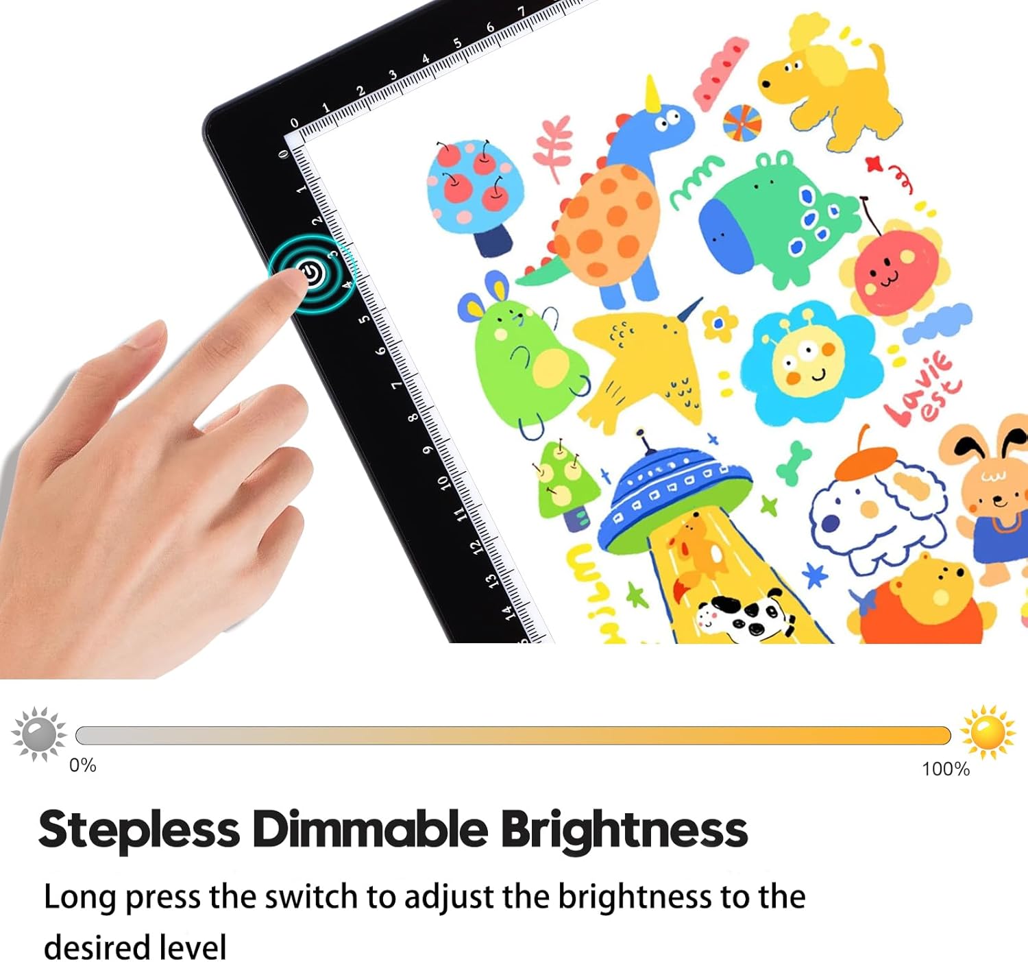 - [Adjustable Brightness] The switch on the diamond painting light board is held down continuously to adjust the brightness at will. Whether you're a professional artist, designer, or weekend crafter, it will help you better complete your projects in any environment.