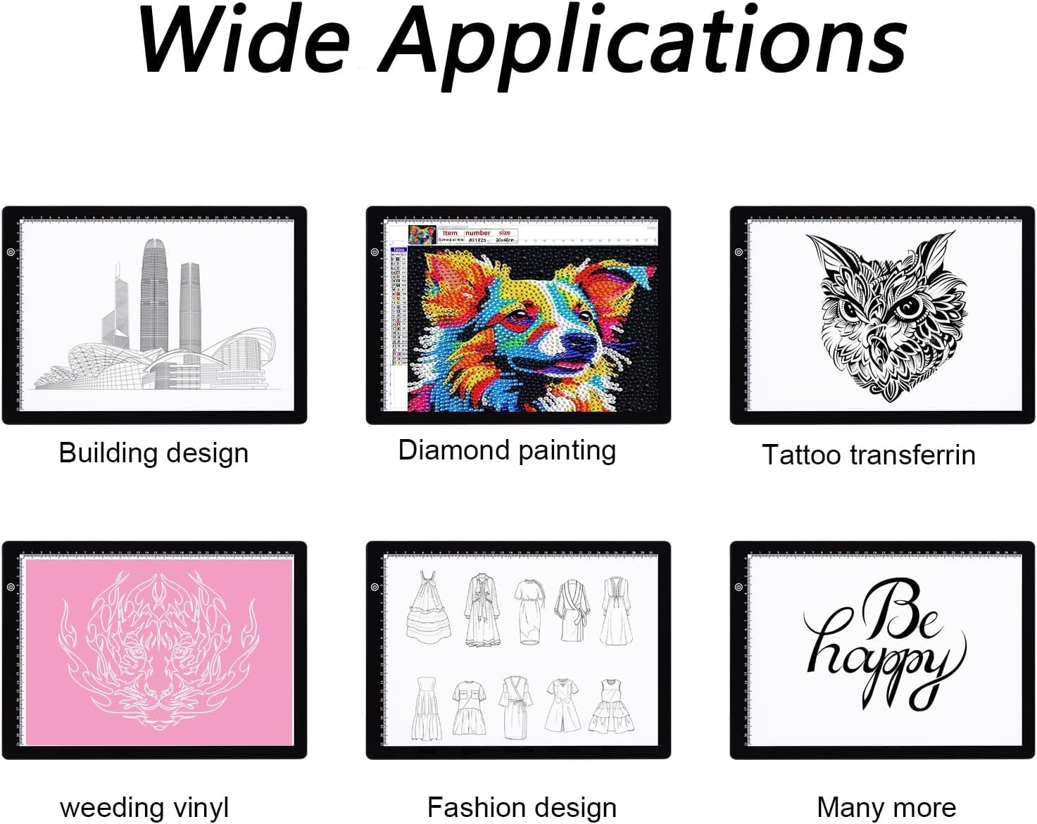 - [Wide Applications] A4 Light pad are widely used in stenciling, 2D animation, calligraphy, embossing, scrapbooking, tattoo transfers, sketching, painting, and more.