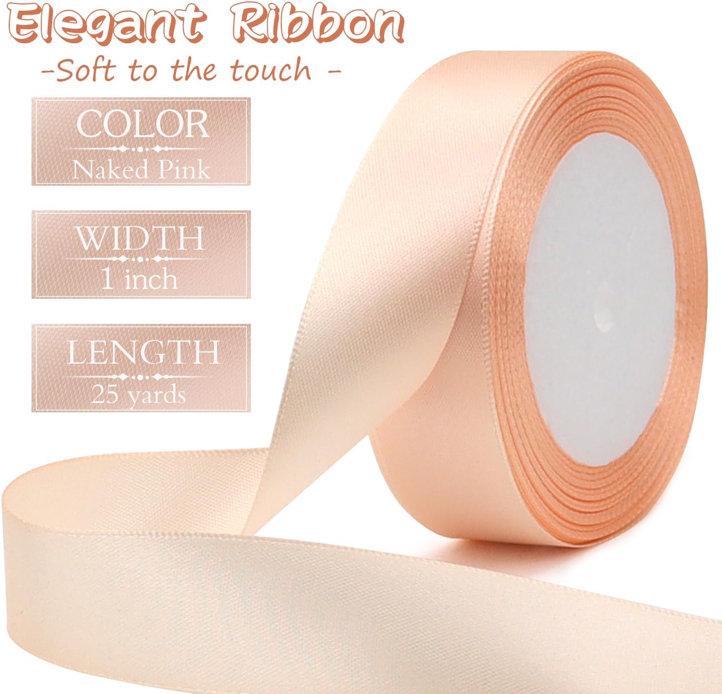 Naked pink Solid Satin Ribbon 1 Inch 25 Yards Solid Polyester Fabric Ribbon for Gift Wrapping Wedding Christmas Baby Shower Birthday Party Decoration Handmade Immortal Flower Craft