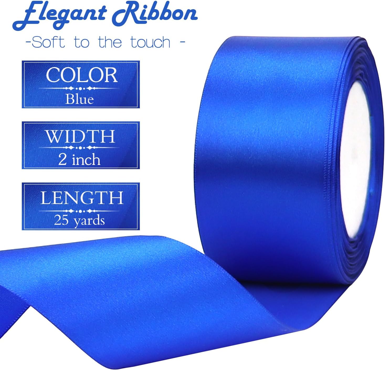 Blue Solid Satin Ribbon 2 Inch 25 Yards Solid Polyester Fabric Ribbon for Gift Wrapping Wedding Christmas Baby Shower Birthday Party Decoration Handmade Immortal Flower Craft