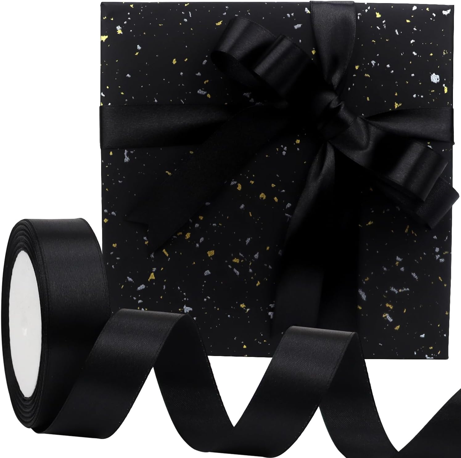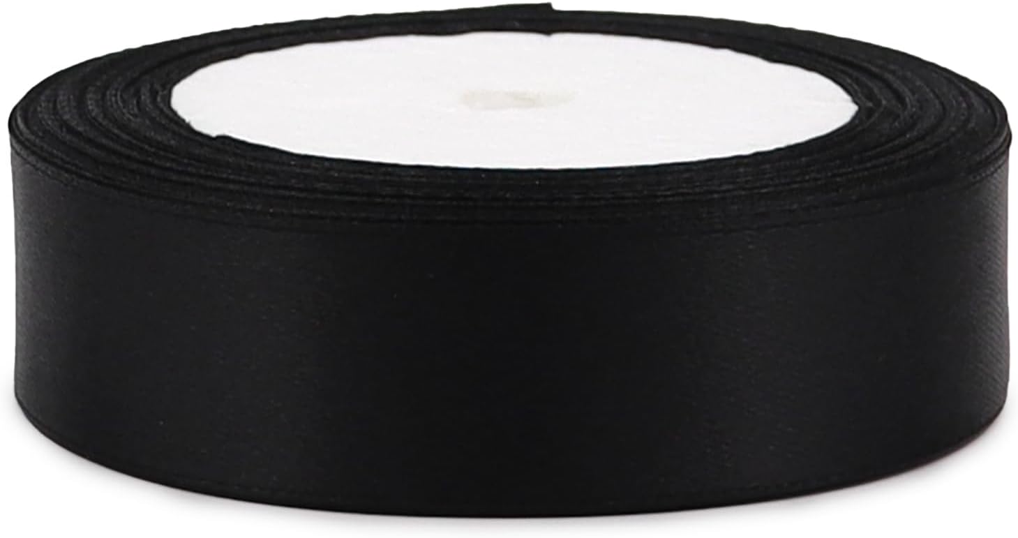 Black Solid Satin Ribbon 1 Inch 25 Yards Solid Polyester Fabric Ribbon for Gift Wrapping Wedding Christmas Baby Shower Birthday Party Decoration Handmade Immortal Flower Craft