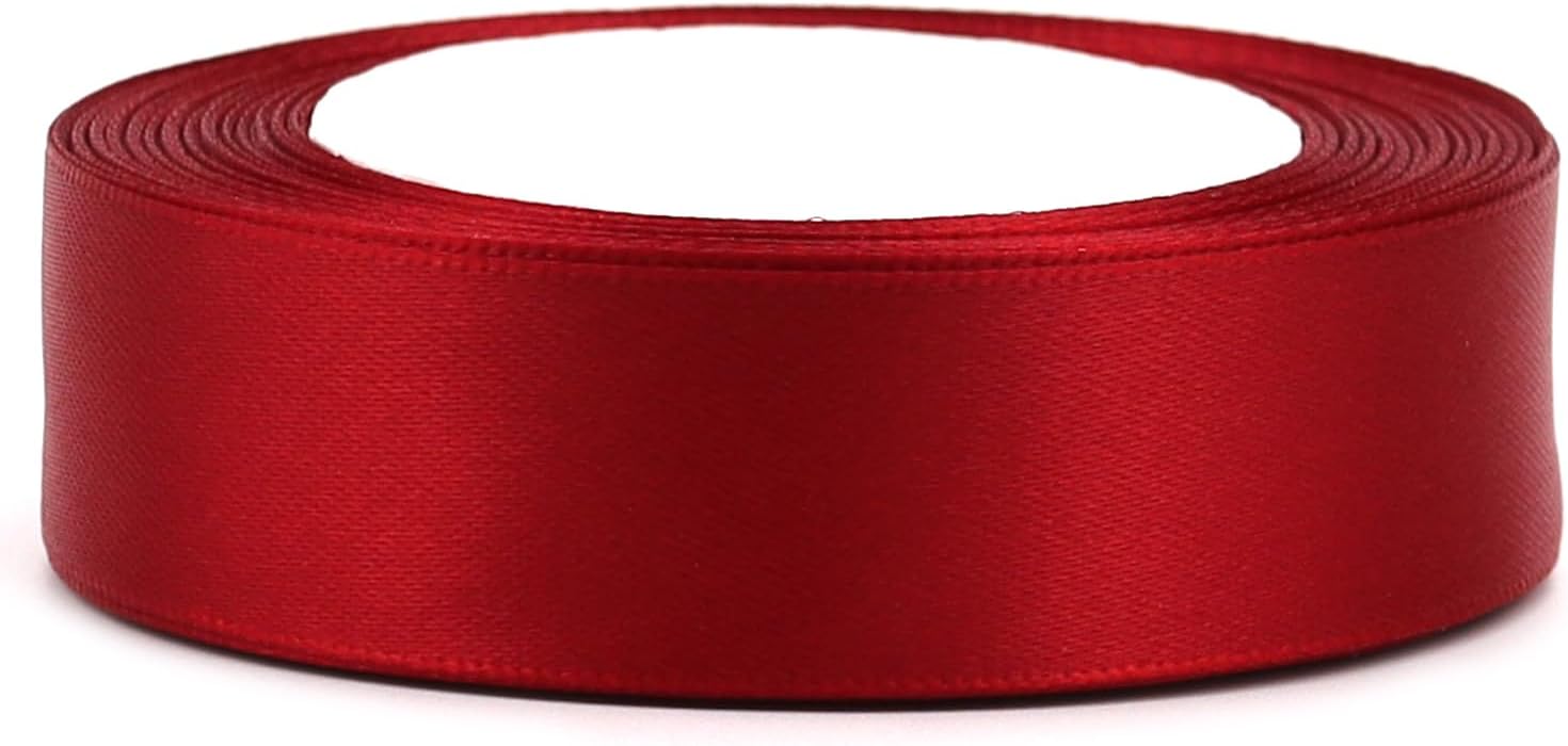 Deep red Solid Satin Ribbon 1 Inch 25 Yards Solid Polyester Fabric Ribbon for Gift Wrapping Wedding Christmas Baby Shower Birthday Party Decoration Handmade Immortal Flower Craft