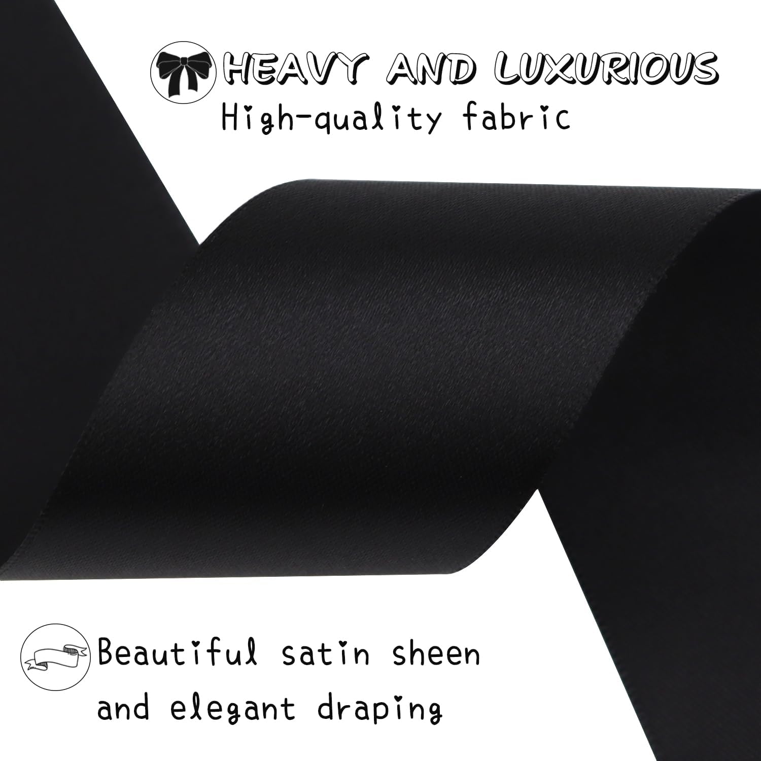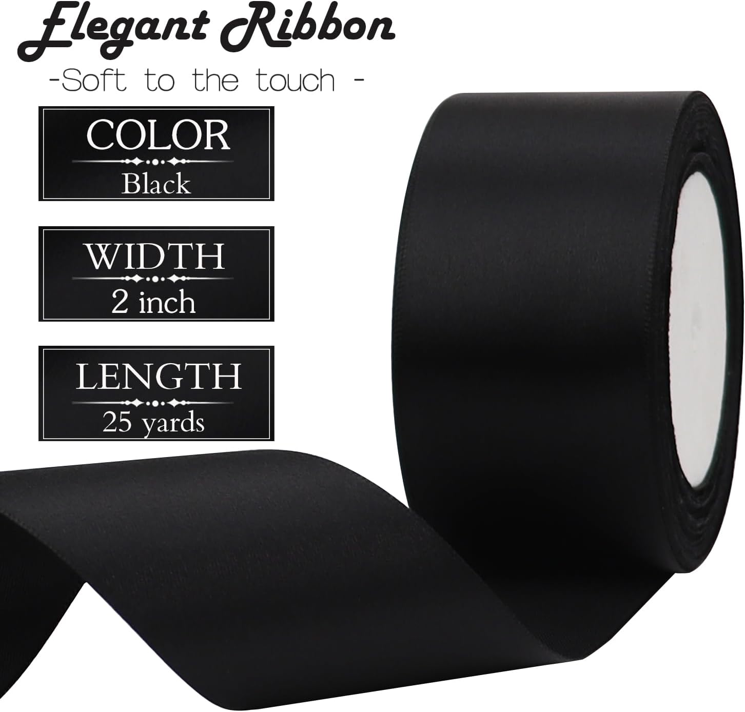 Black Solid Satin Ribbon 2 Inch 25 Yards Solid Polyester Fabric Ribbon for Gift Wrapping Wedding Christmas Baby Shower Birthday Party Decoration Handmade Immortal Flower Craft