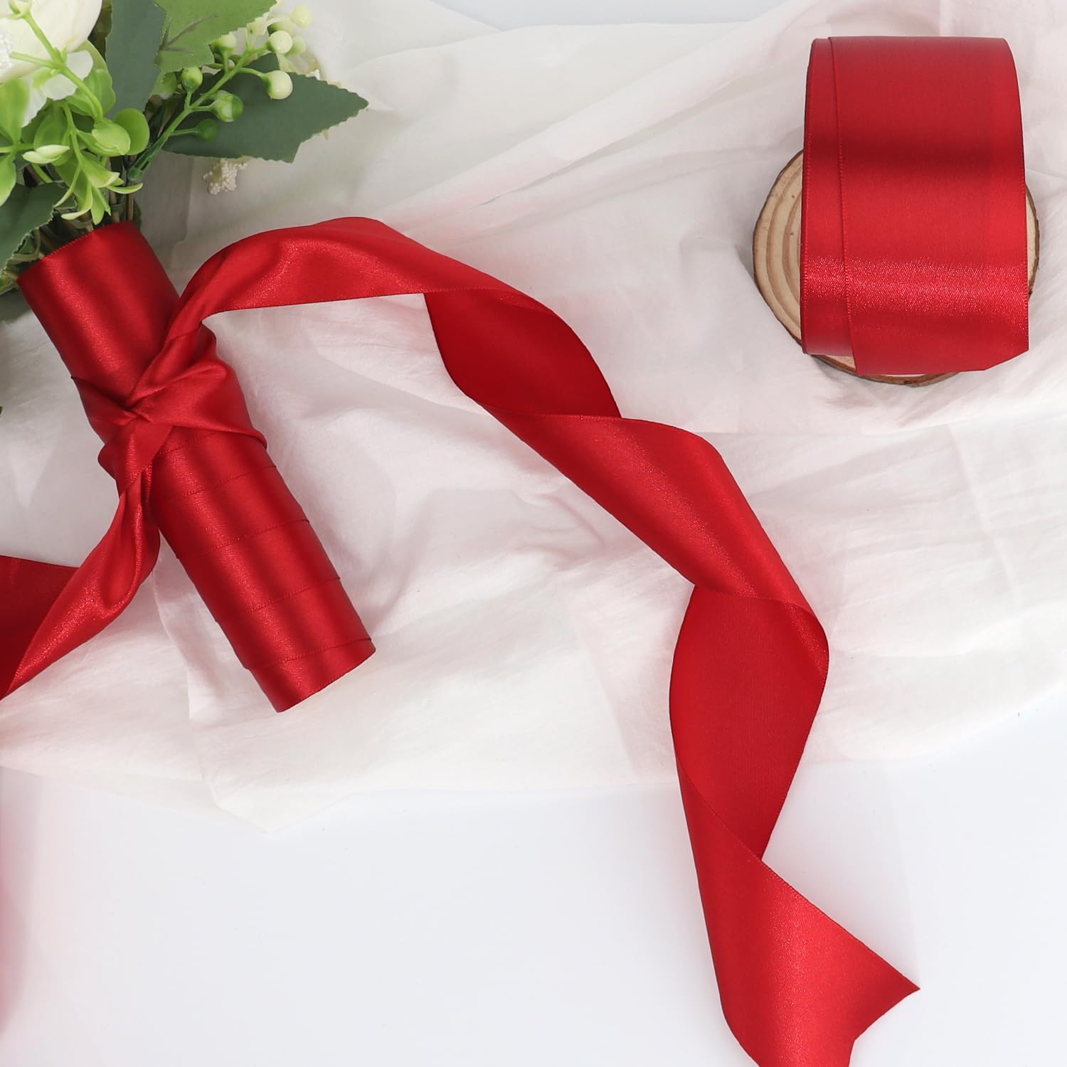 Deep red Solid Satin Ribbon 2 Inch 25 Yards Solid Polyester Fabric Ribbon for Gift Wrapping Wedding Christmas Baby Shower Birthday Party Decoration Handmade Immortal Flower Craft