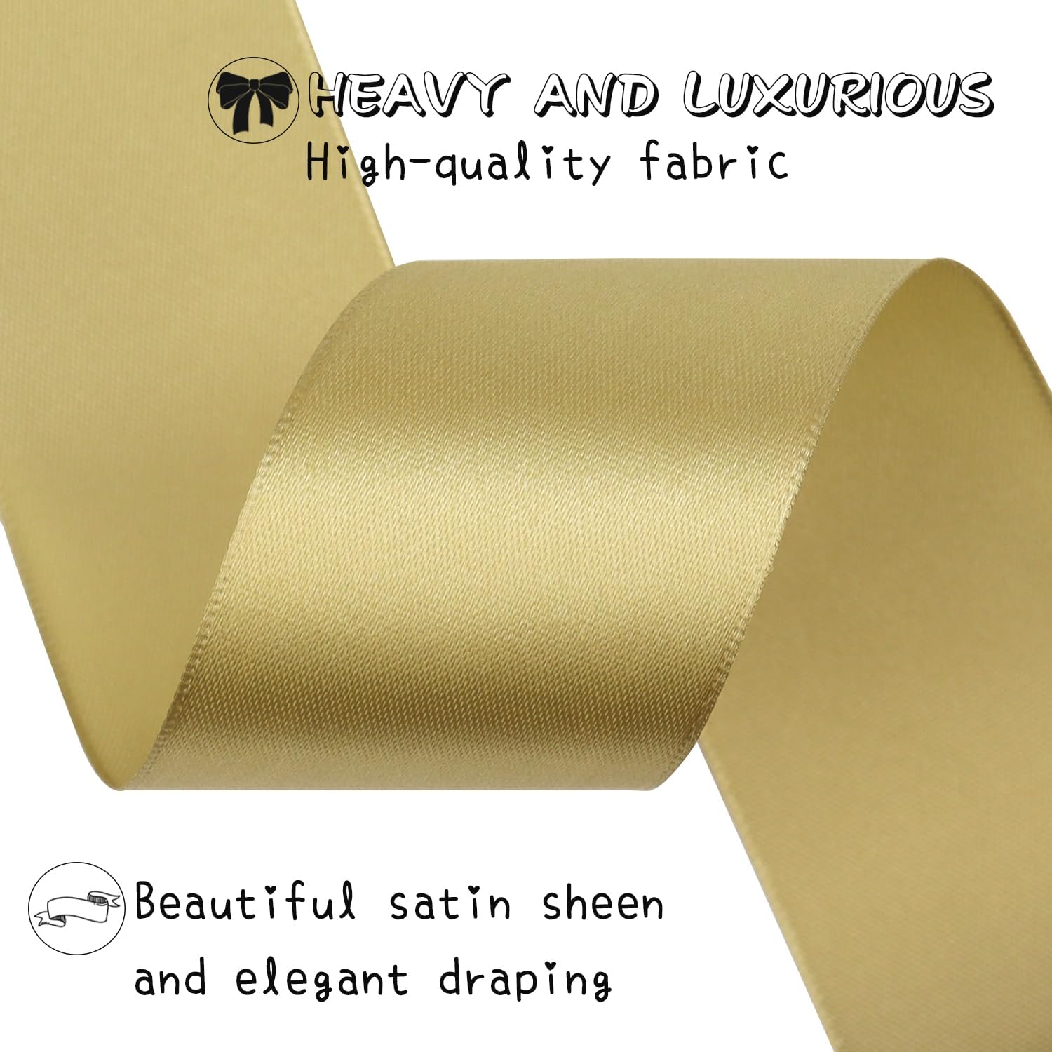 Champagne Gold Solid Satin Ribbon 1-1/2 Inch 25 Yards Solid Polyester Fabric Ribbon for Gift Wrapping Wedding Christmas Baby Shower Birthday Party Decoration Handmade Immortal Flower Craft