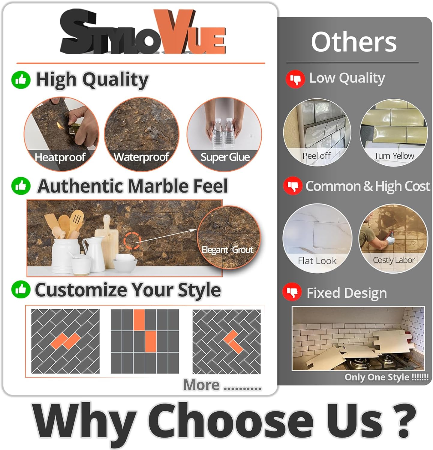 - šš„ššÆššš ššØš®š« šš©ššš: Featuring unique slot edges for a realistic grout-look, StyloVue self adhesive wall tiles offer an authentic design and texture that customers adore. Elevate the aesthetic of your space while simplifying maintenance and cleaning, without the hassle of traditional grouting.