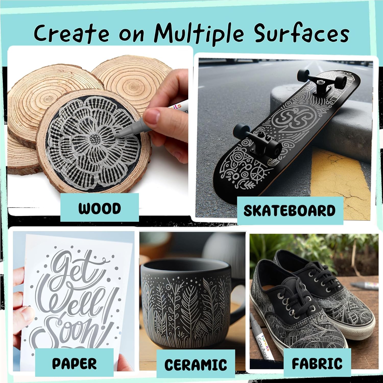- Gray Paint Pens Metallic - Highly pigmented, Quick to dry & used as paint markers for canvas, paint markers for wood, or as glass paint markers, rock painting pens, on wine glasses & ceramic paint pen (dishwasher safe ink)