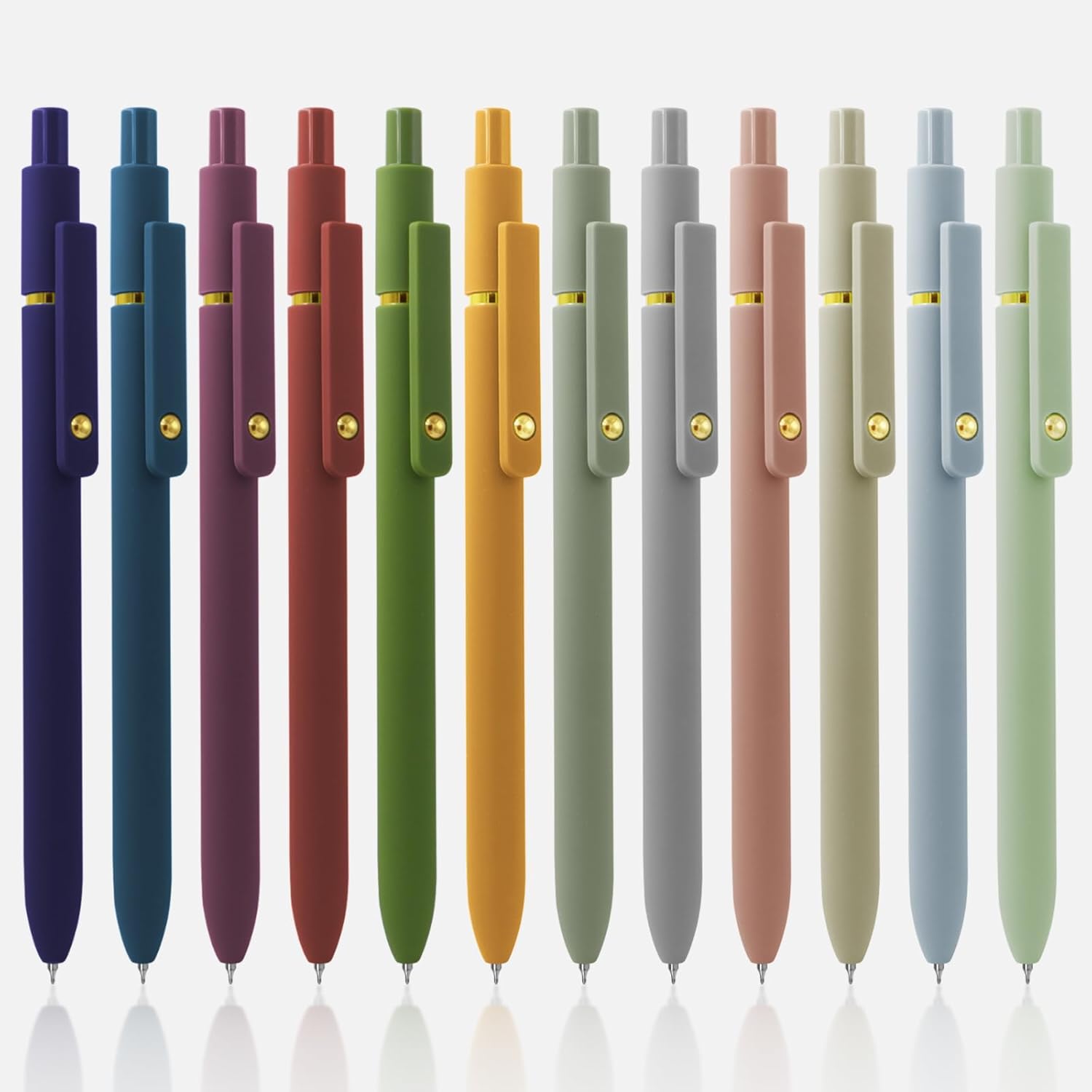 12 Pcs Gel Pens 0.5mm Quick Dry Black Ink Pens Fine Point Smooth Writing Pens, Cute Office and School Supplies Gifts for Women Teacher Students (12 Pcs Morandi and Vintage Gold)