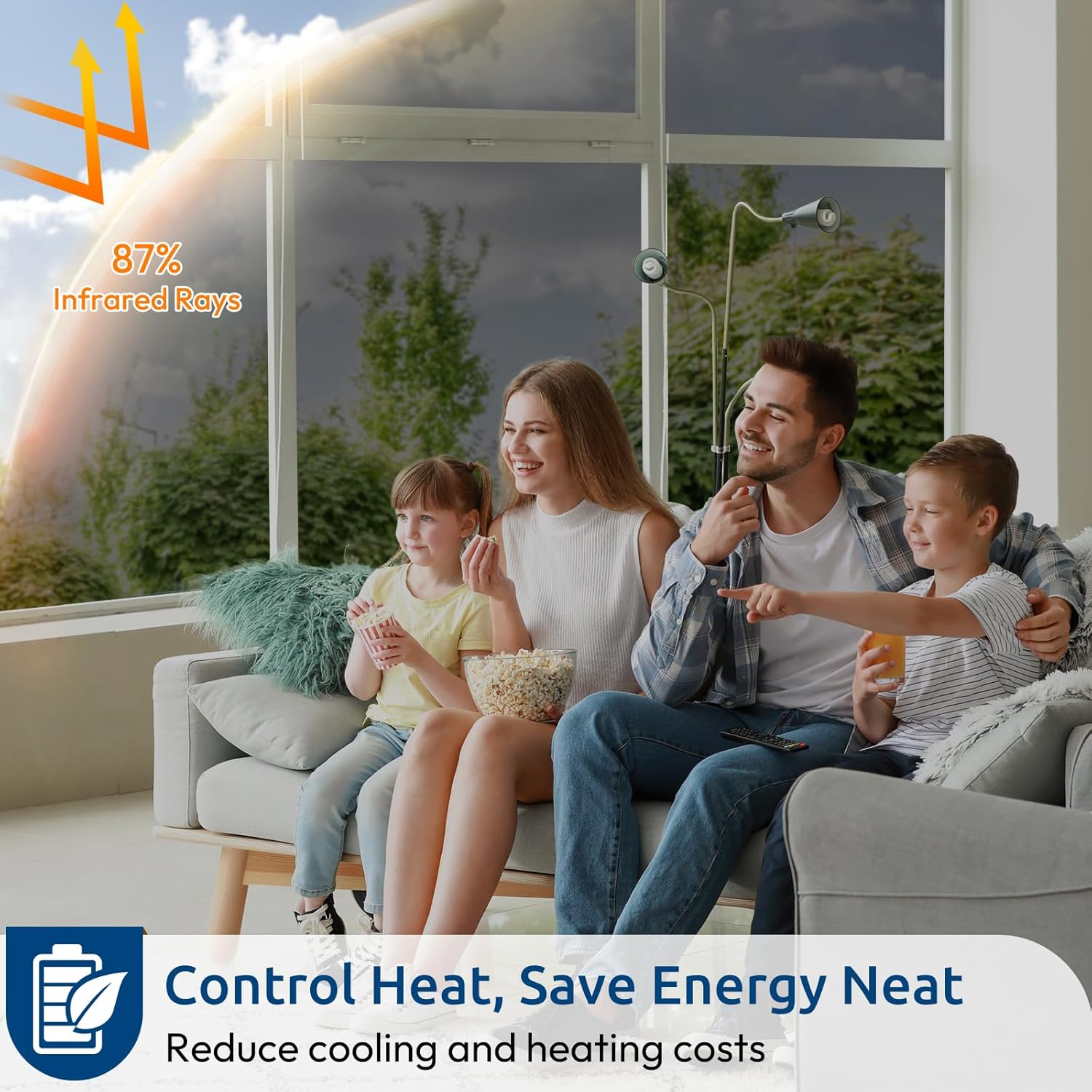 - Heat Control, Energy Saving: This heat control window film reflects 87% of infrared rays, reducing heat transmission through your glass. This home window tint is an economical way to stay cool in summer and retain heat in winter, helping you save money by lowering energy bills. Note: Do not apply on double-pane windows exposed to prolonged sunlight