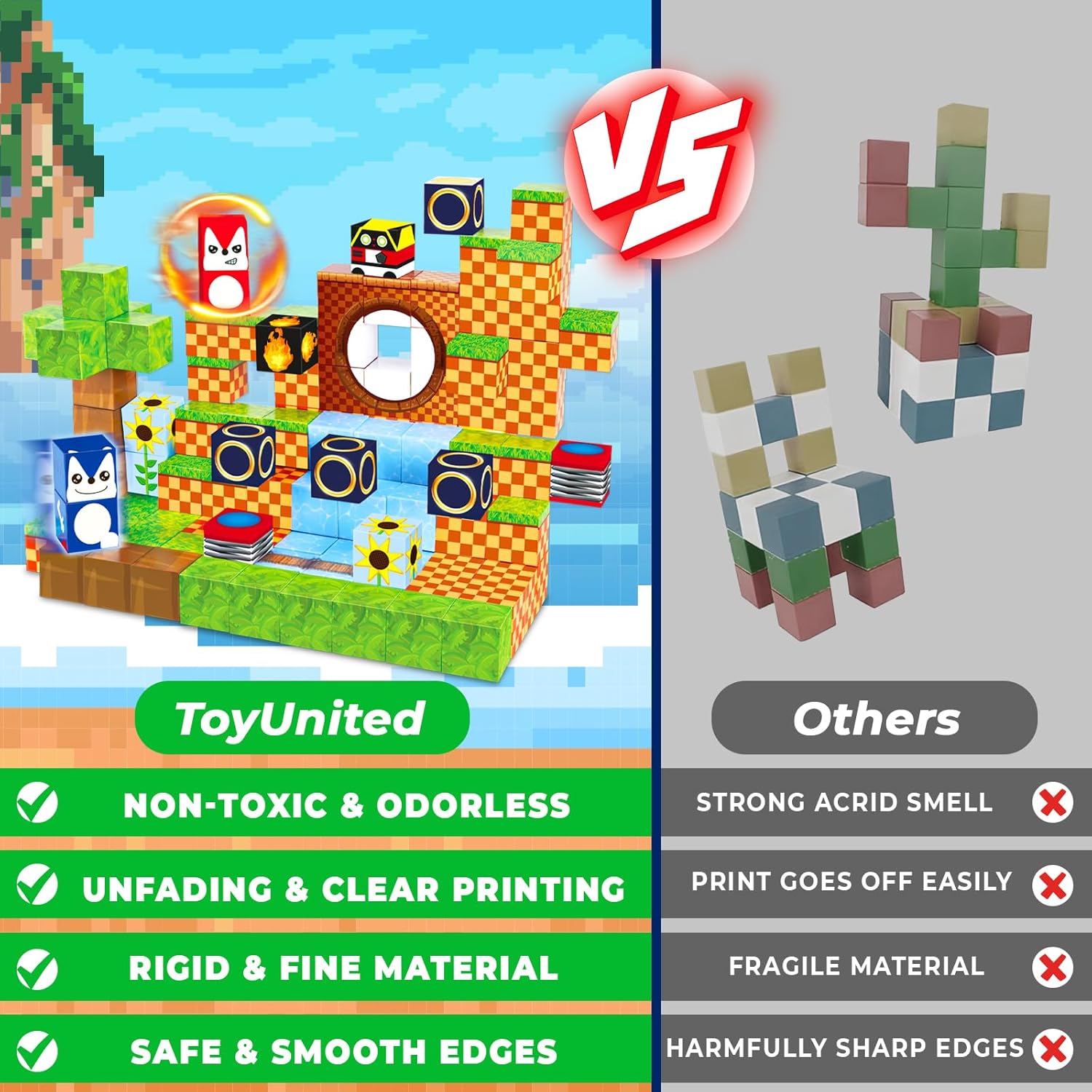 - 【Magnetic Blocks】 Our magnetic building blocks set is crafted with sealed edges and a durable structure, Made from non-toxic, eco-friendly materials, these magnetic blocks ensure strong and safe play. Perfect magnetic blocks for kids ages 4-8 to play safely and creatively.