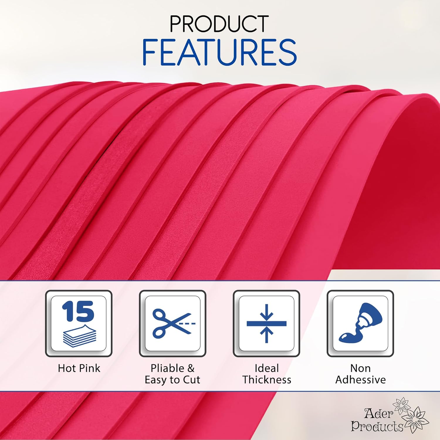 Hot Pink EVA Foam Sheets for Crafts, 9 x 12 Inch, 2mm Thickness, 15 Pack – Ideal for DIY Arts and Crafts, Foam Paper for Kids, Cosplay and Costumes