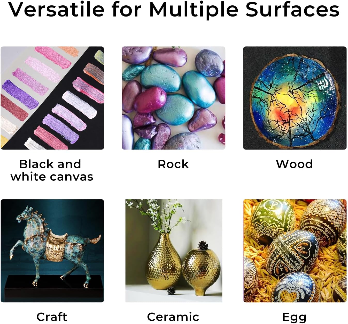 - WIDELY USED: ARTEM Metallic Acrylic Paint can be applied to a variety of surfaces like wood, glass, plastic, metal, and stone. The paint is smudge-proof and weather-resistant, therefore also suitable for outdoor use, adding a decorative touch on interior/exterior walls, trim, doors, furniture, crafts, and more.