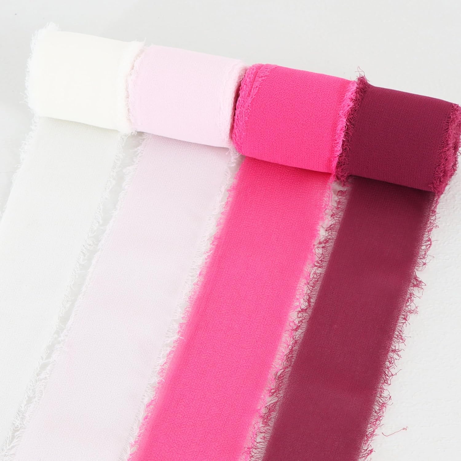 TONIFUL 4 Rolls Hot Pink Chiffon Ribbon Set 1 1/2 Inch 5.5 Yards Silk Fabric for Gift Wrapping, Wedding Party Decoration, Flower Bouquet, Bows Making, DIY Crafts