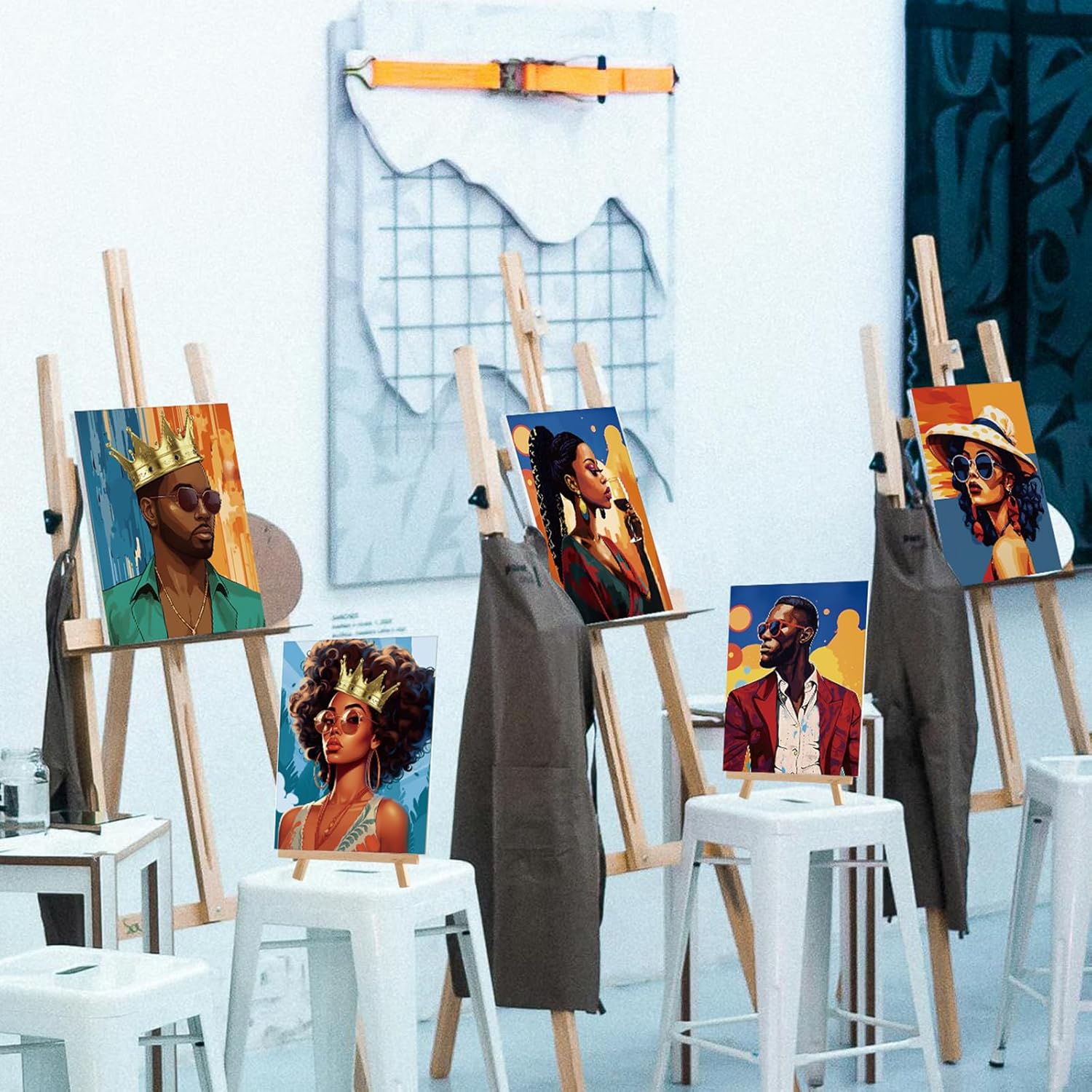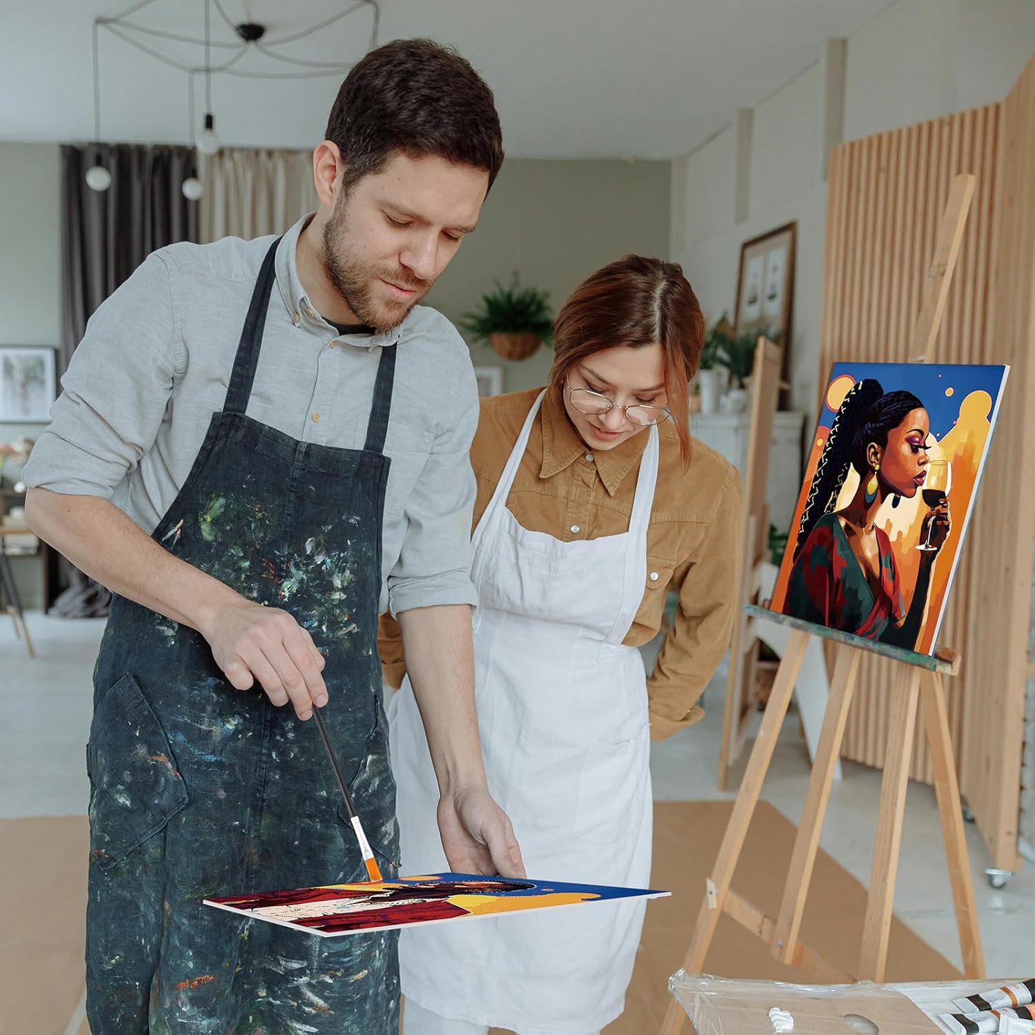 Cholemy 36 Pcs Paint and Sip Kit for Adults 8''x10'' Pre Drawn Canvas for Painting DIY Afro Acrylic Painting Kit Wood Easel Brushes Date Night Bulk for Christmas Party Gifts(Black Women)