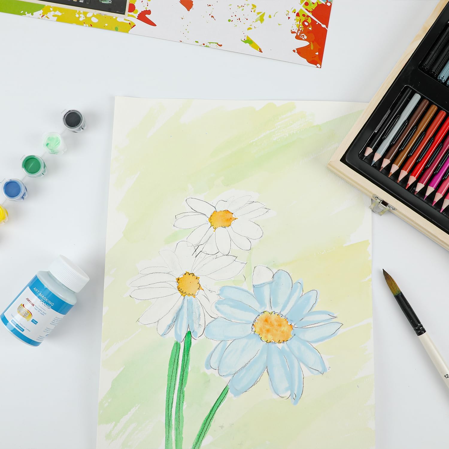 - WIDELY USE: JOFOOK liquid latex art masking fluid is widely use for watercolor, gouache painting, ink, illustration, arts projects & crafts supplies drawing.