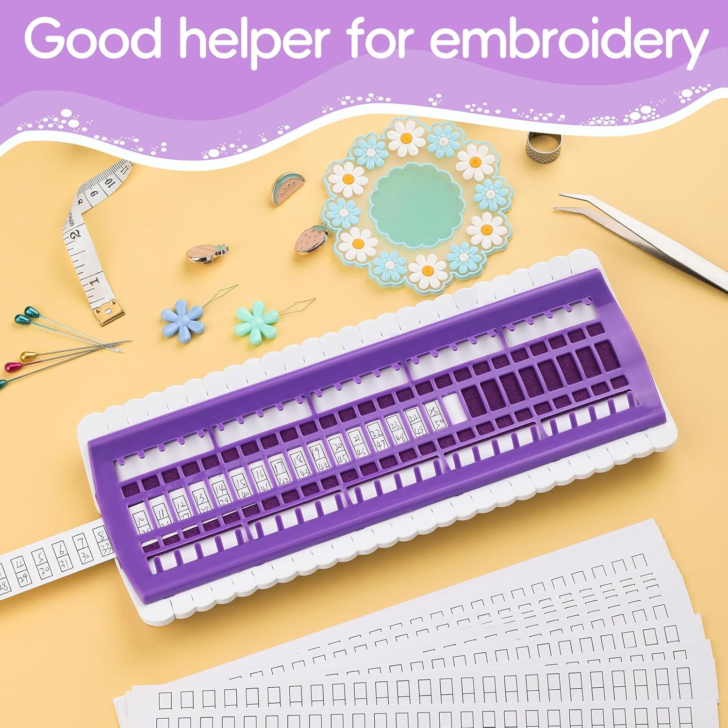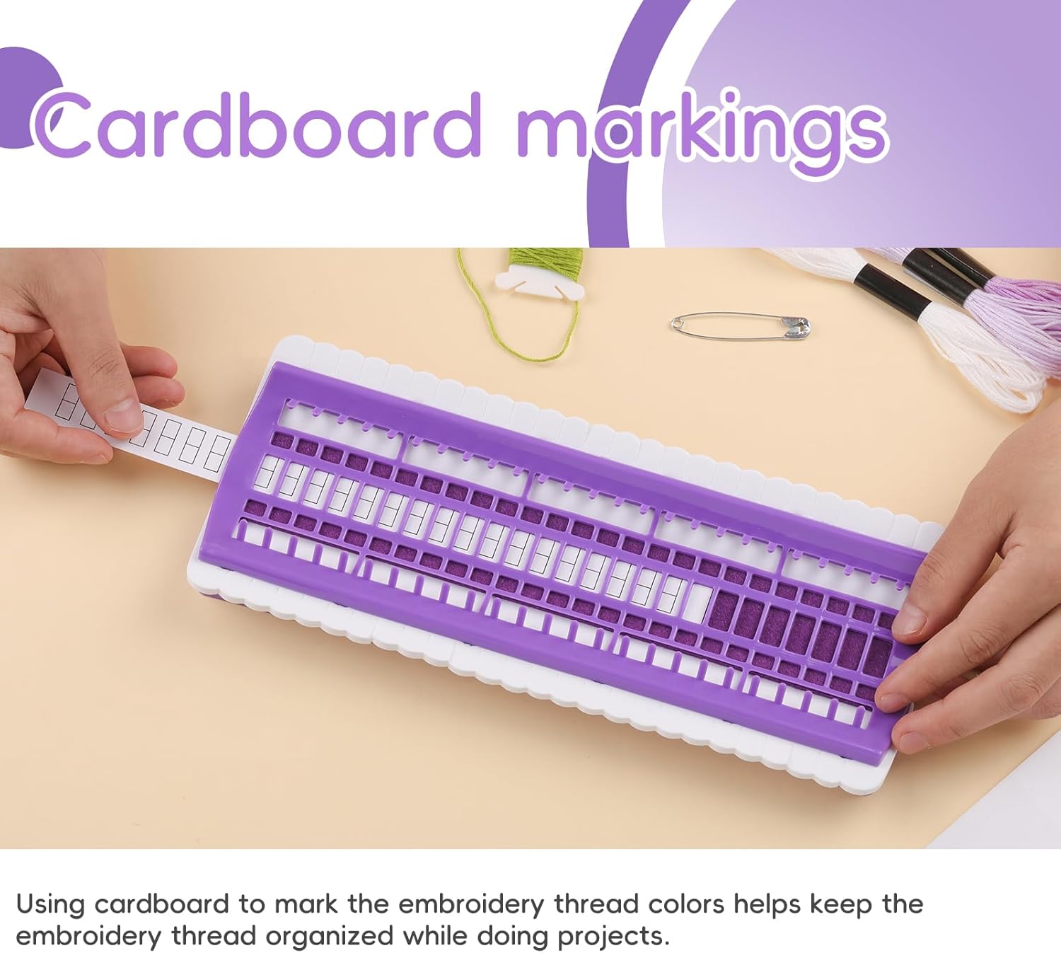 - Set Contents: There is a purple embroidery thread organizer in the package, with 15 blank label cards. It can accommodate 50 colors of embroidery threads, which helps to keep the embroidery threads neat while working