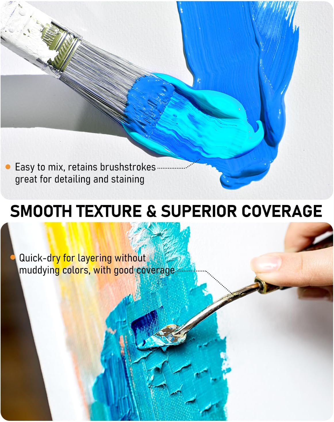 - Premium Quality & Quick Dry: Nicpro acrylic paint set contains smooth, highly pigmented color to produce true, consistent shades, good coverage and a creamy texture. Easy to mix & blend, quick dry and long lasting,won’t fade over time.