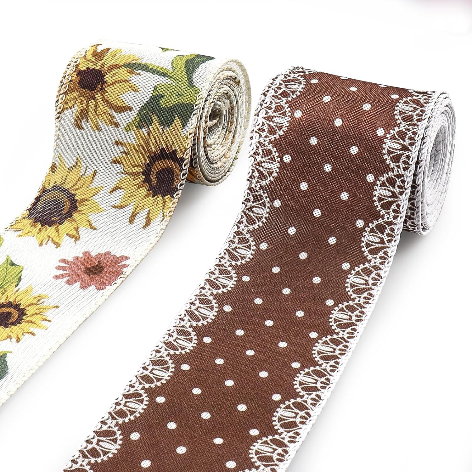 - Autumn Harvest Ribbon Design: The fall ribbons feature exquisite designs with cute sunflower patterns and white-brown polka dot ribbons. This autumn harvest-themed ribbon is full of auspicious and joyful atmosphere, meeting the needs of autumn harvest festival decorations and packaging. The elegant, vintage country style will elevate your decorations to a higher level.